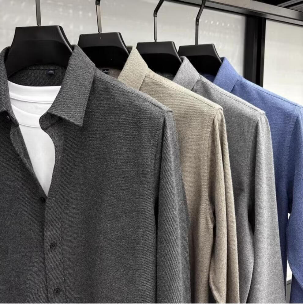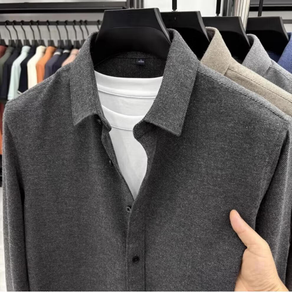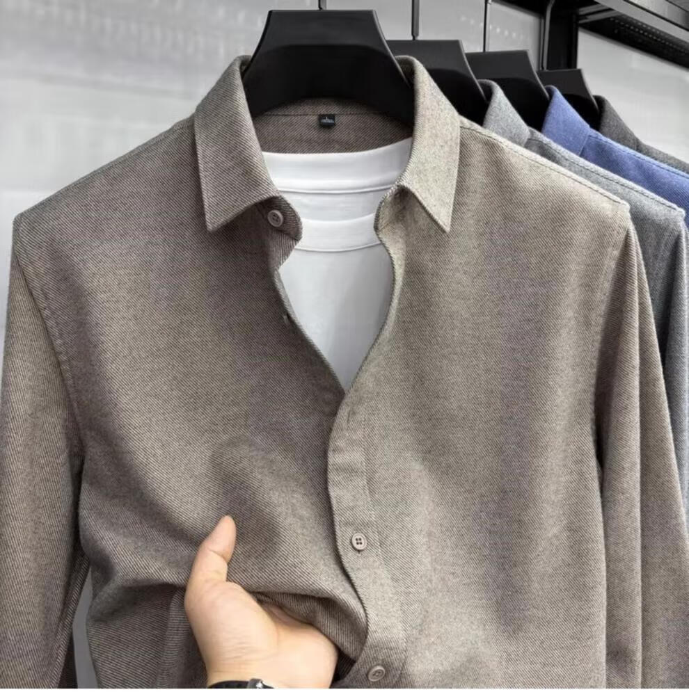 MAYOR Youngor woolen shirt men's long-sleeved spring and autumn thick solid color business casual men's men's top Khaki N-25148 M -48 recommended 100-125Jin Jin equals 0.5 kg