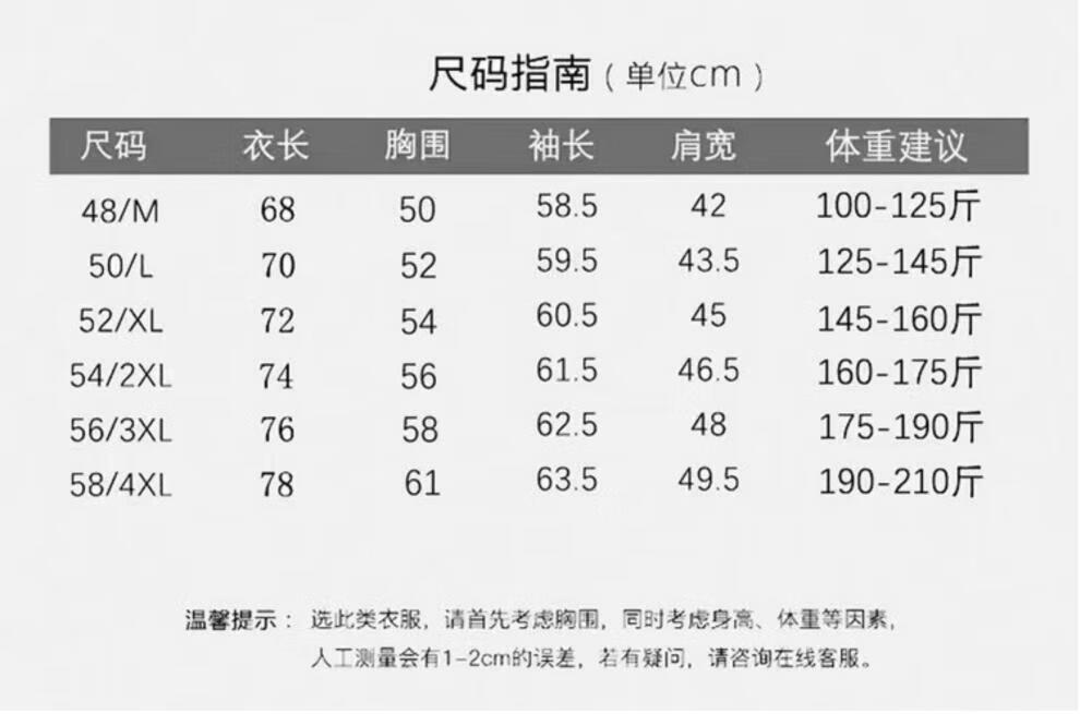 China (cm) 165 / 88-90 170 / 96-98 175 / 108-110 180 / 118-122 185 / 126-130