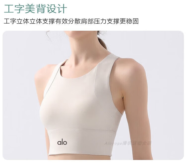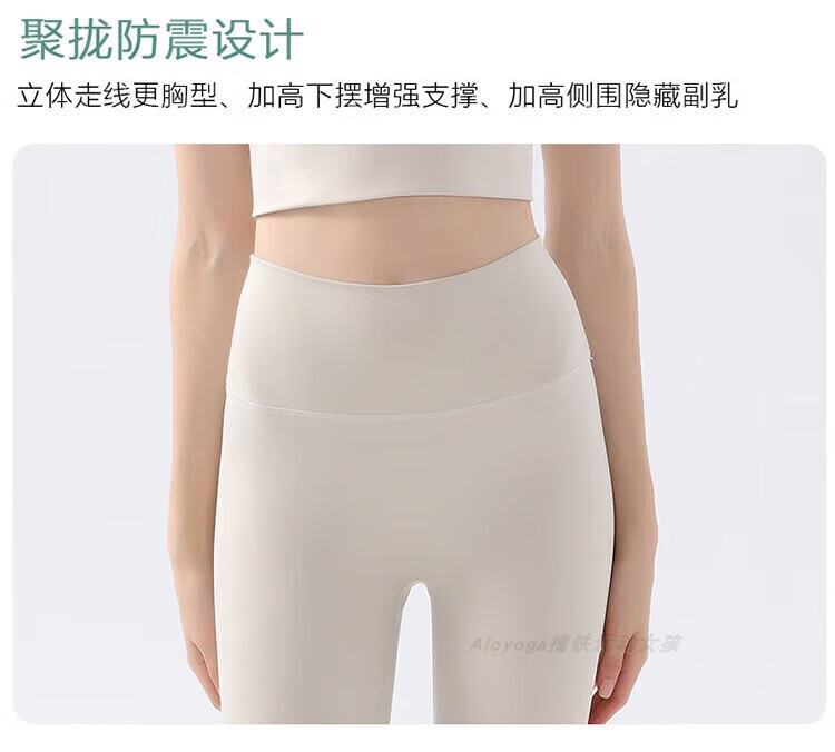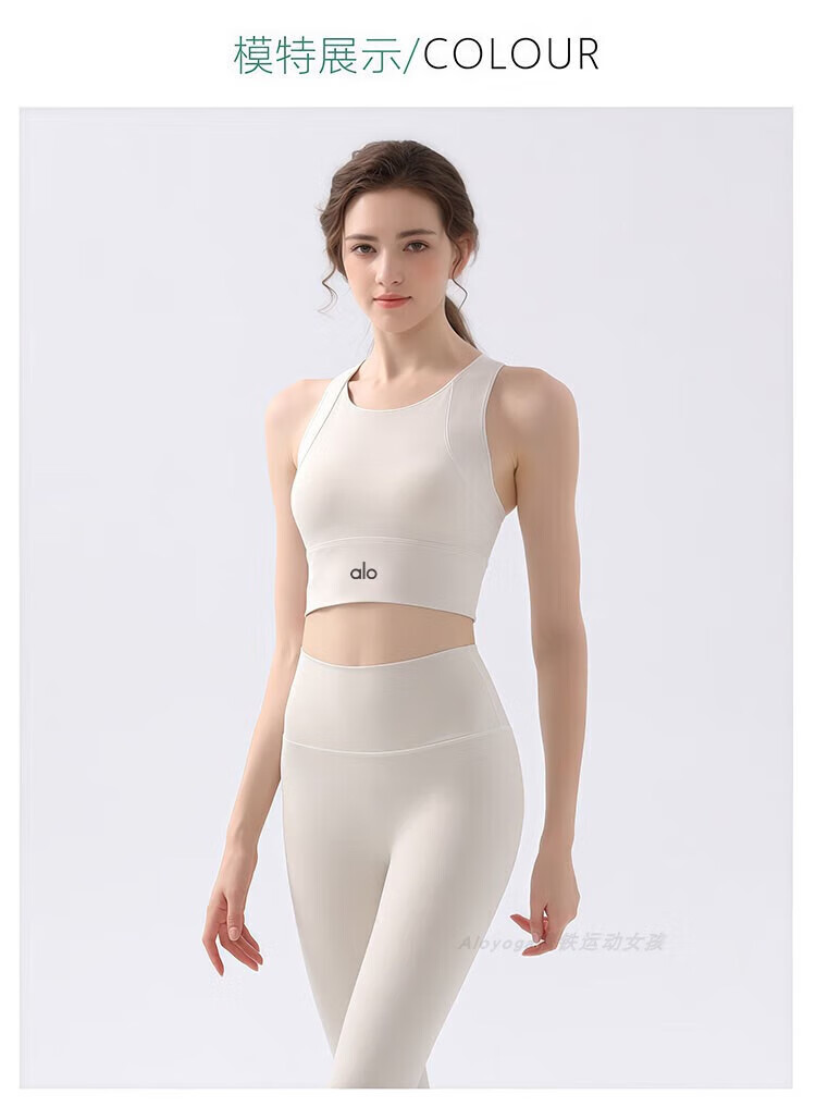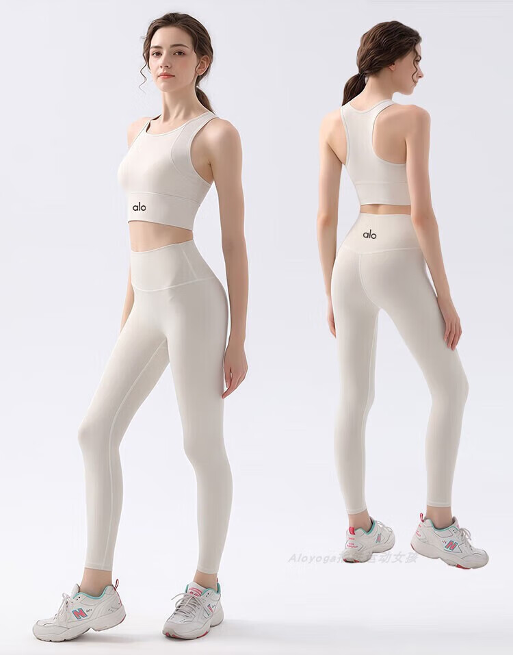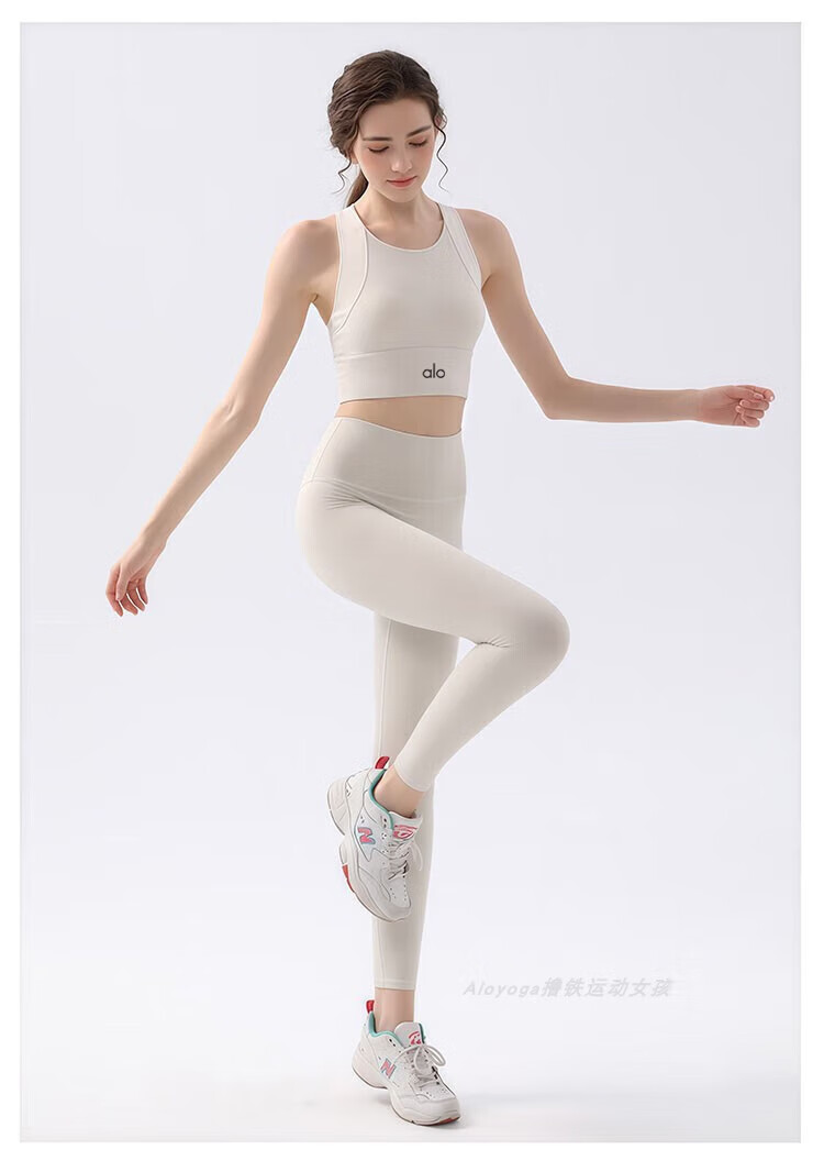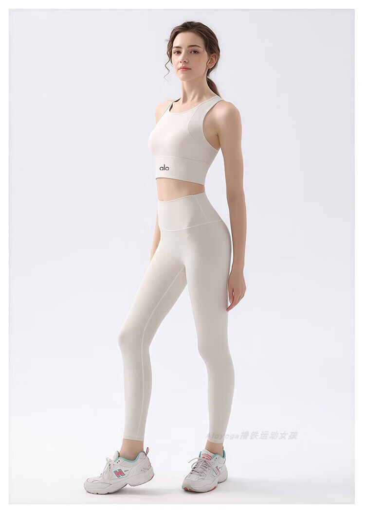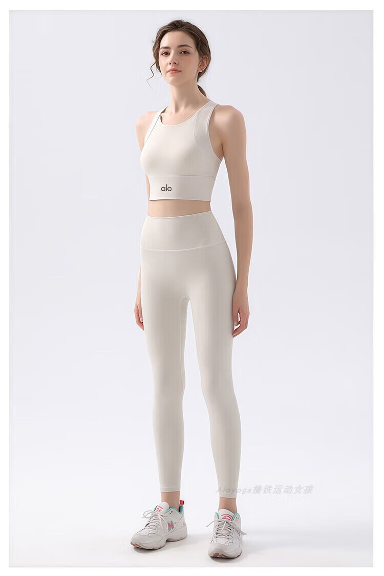 ALO YOGAALO Yoga Suit Feminine Nude Shockproof Pilates Fitness Sports Vest Two-piece Set Ivory Top + Pants M 100-110Jin Jin equals 0.5 kg