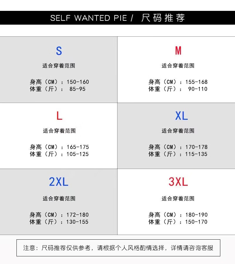 China (cm) 160-165/84-86 165-170 / 88-90 167-172 / 92-96 168-173 / 98-102 170-176 / 106-110