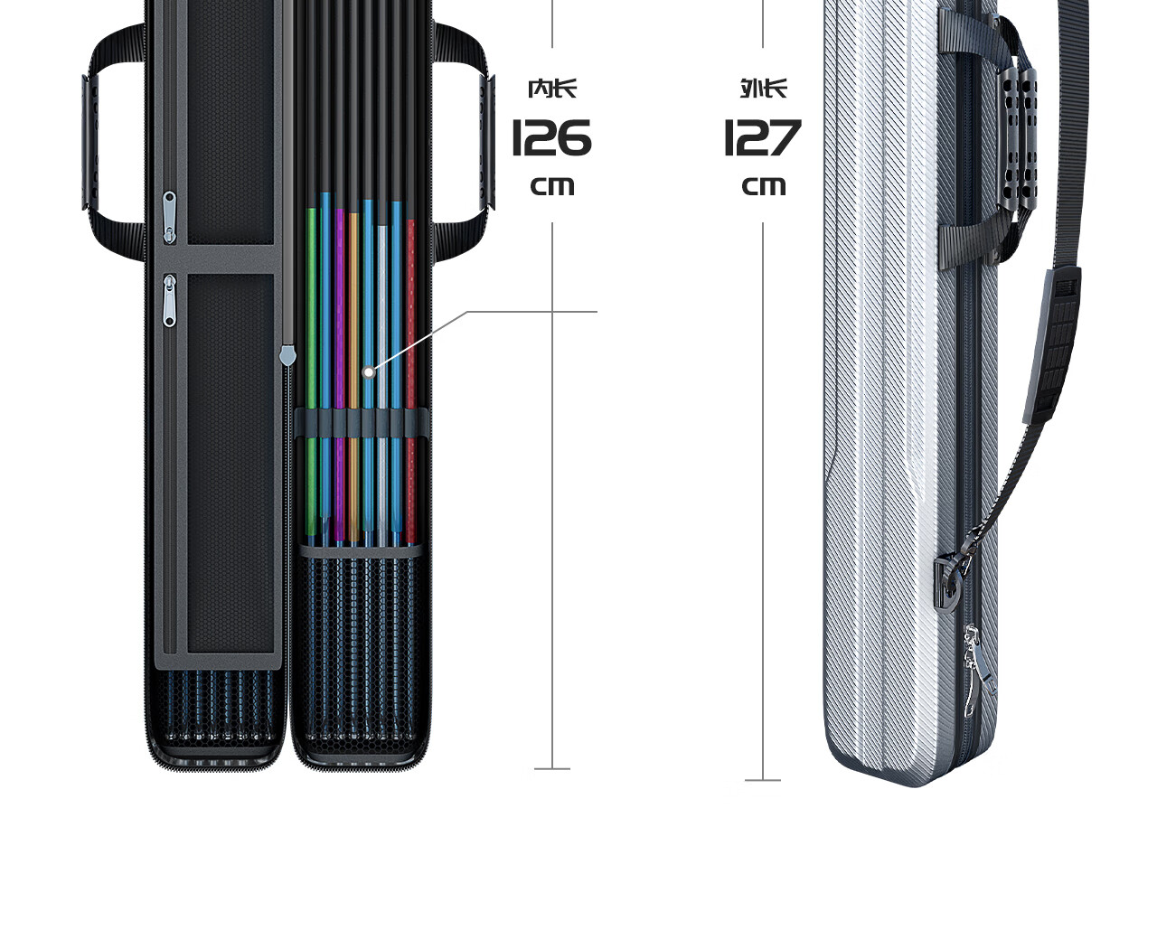 Zailou's new hard shell fishing rod bag waterproof rod bag large capacity rod box fishing gear bag umbrella bag lightweight special rod bag fish bag extended and thickened hard shell silver gray 130*8*8cm