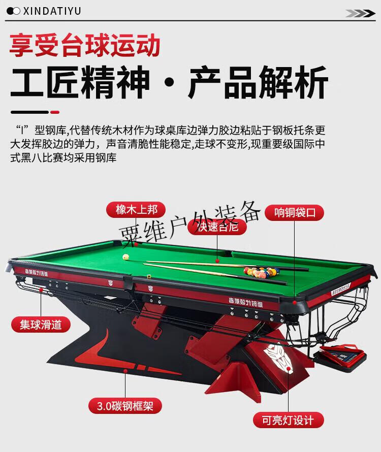 Venom fang style Chinese black eight-ball billiard table standard commercial billiard hall club adult home single tooth billiard table Venom fang style wooden library - standard delivery included