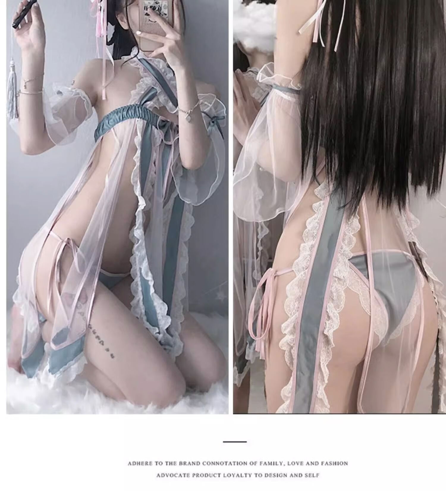 Sexy lingerie, sexy Hanfu, ancient style, pajamas, flirting uniform, national style, burgundy jacket, belt, bellyband, thong M