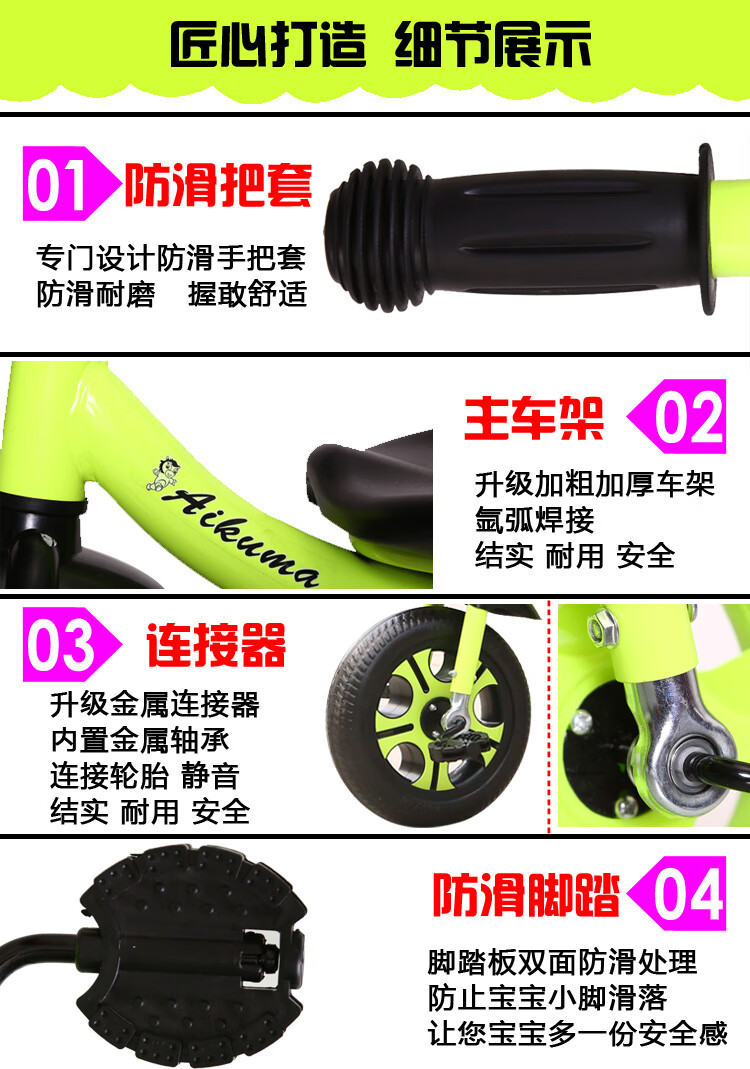 Children's tricycle bicycle with push handle baby stroller child bicycle bicycle 1-3-6 years old stroller _Classic wheel red