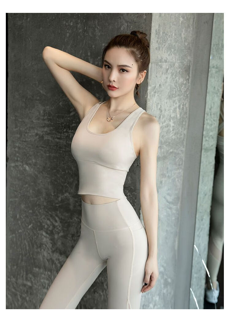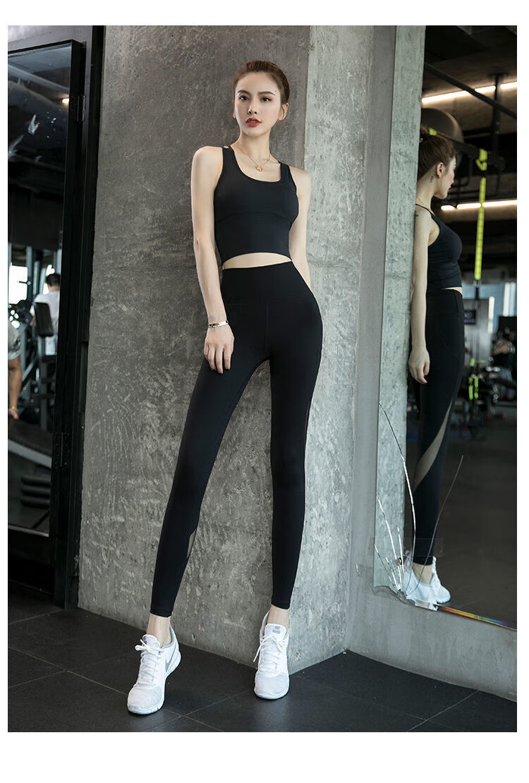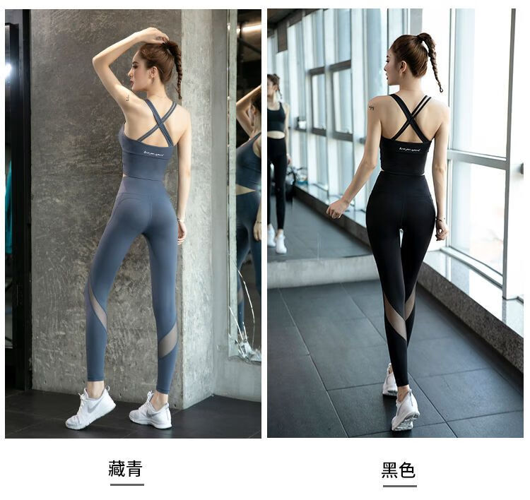 DYAASS Pilates Clothes Summer Yoga Wear Suit Women's Fashionable Good-looking Sports Vest Belly Controlling Buttocks Lifting Fitness Pants Solid Color Vest Style Sports Bra-Navy A3027 L XL120-135Jin Jin is equal to 0.5 kg