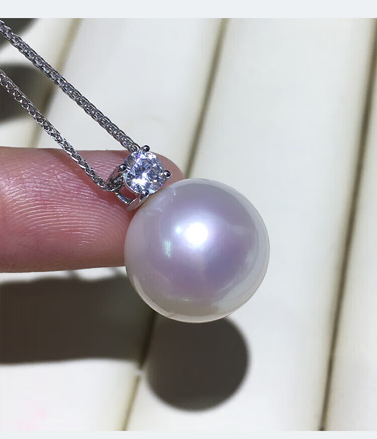 Everlasting Leaf Natural Edison Pearl Pendant, Round and High-Light 18K Gold Zircon Princess Style, Comparable to Australian White Seawater Pearls 18 12-13mm