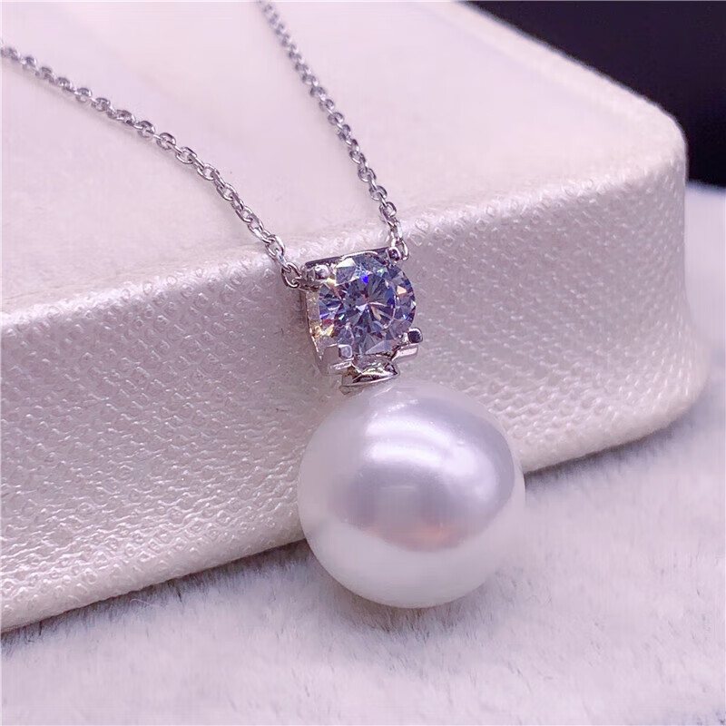 Everlasting Leaf 925 Pearl Pendant Style Freshwater Pearl Powder Pendant Including Chain Perfect Round Gift for My Girlfriend 12-13mm White Pearl Silver Drag Pendant 10-11mm