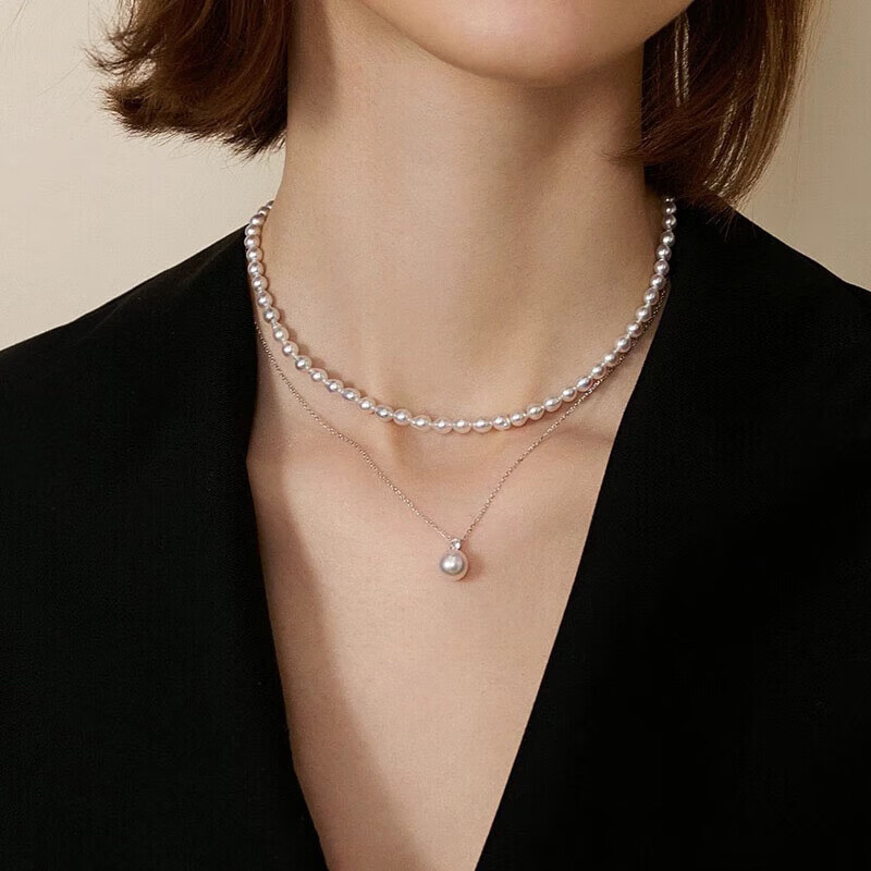 Everlasting Leaf Princess Style Pearl Pendant S925 Silver Princess Diana Style Perfect Round Aurora Natural Freshwater Pearl Necklace for Women Stackable 7-8mm