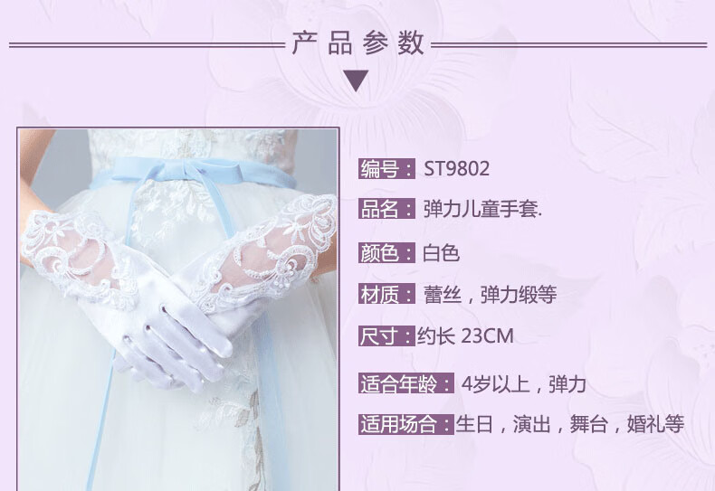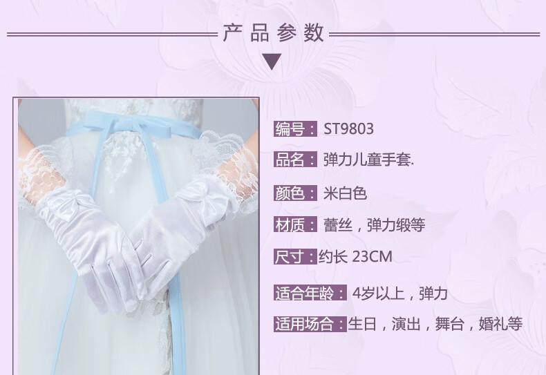 Miaopule white gloves etiquette children's wedding dress gloves princess girls girls performance dance flower girl birthday super elastic five mesh elastic style - white 4-8 years old super elastic
