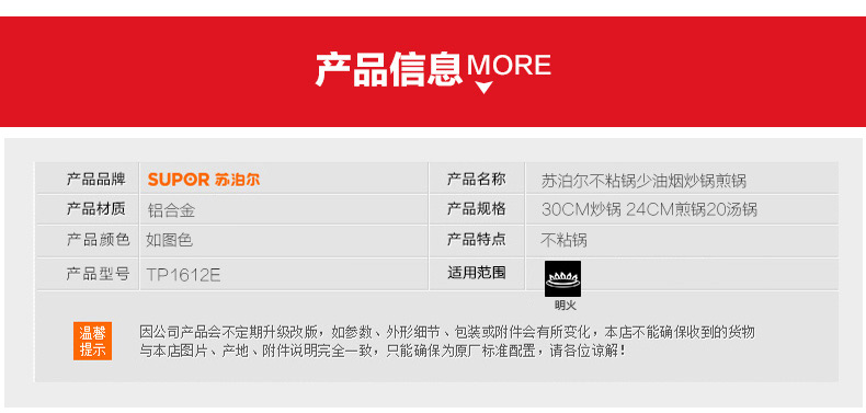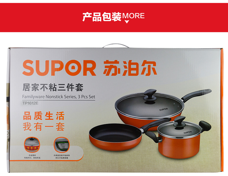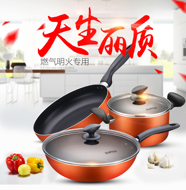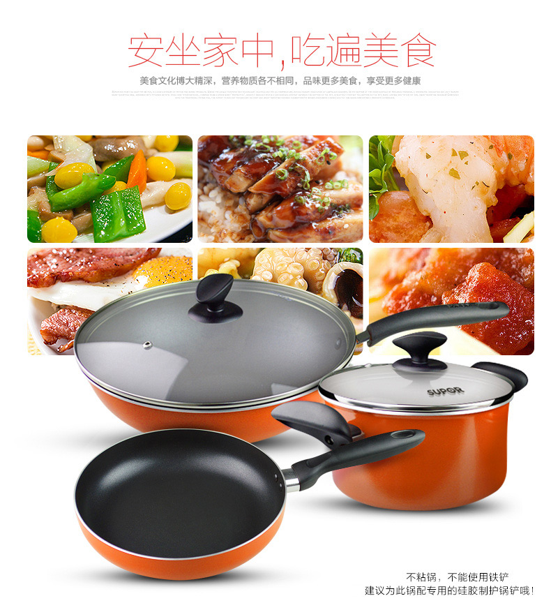 SUPOR three-piece pot set, non-stick pot, smokeless wok, frying pan, soup pot, kitchen pot set TP1612E