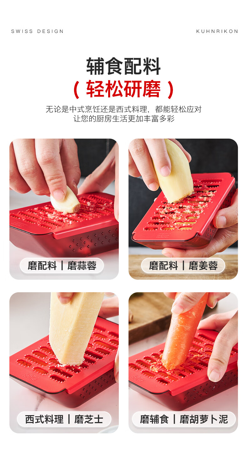 Swiss Likan grater, garlic and ginger grinder, household grinding and grating artifact, food supplement, ginger and garlic grater, red