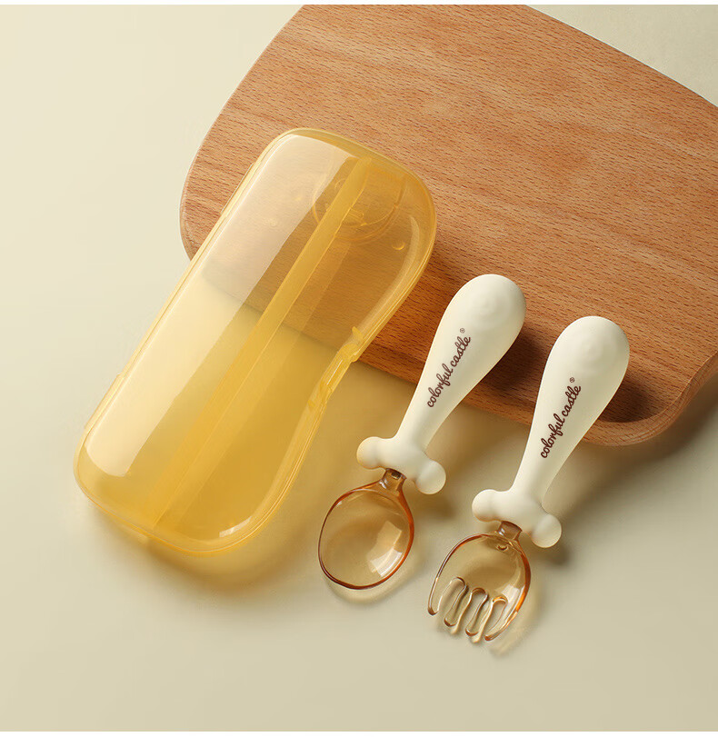 Kaooseen baby training spoon for autonomous eating, bendable ppsu twist fork and spoon, learning feeding spoon, baby food supplement, children's tableware ppsu fork and spoon (with storage box)