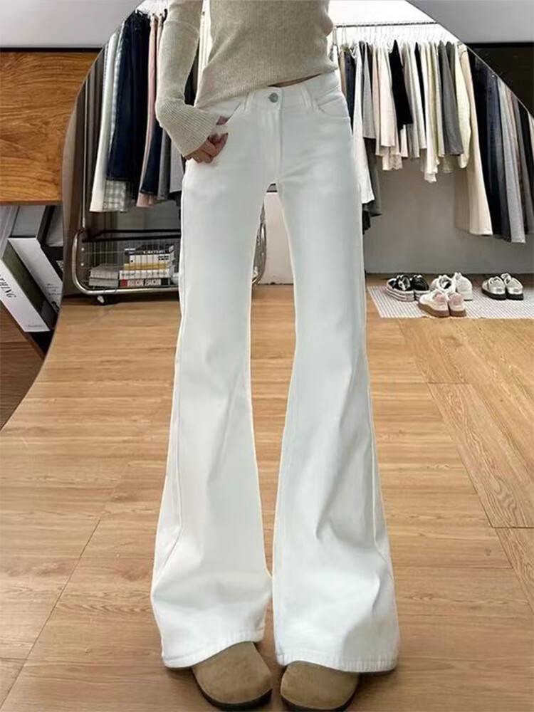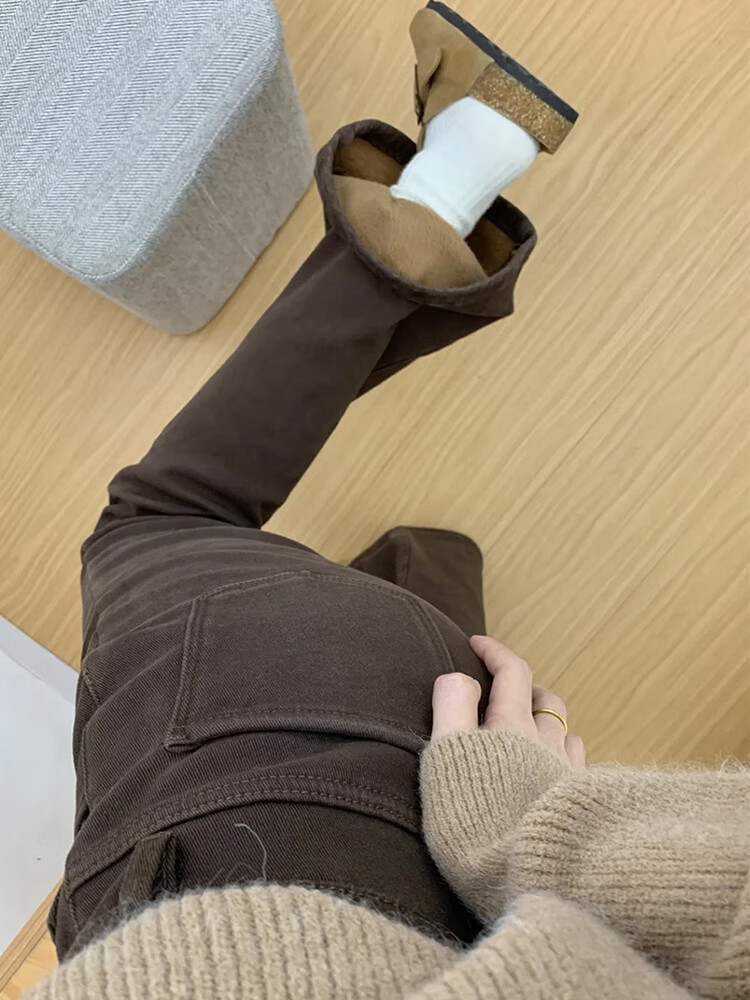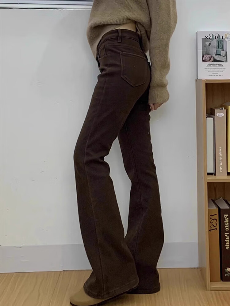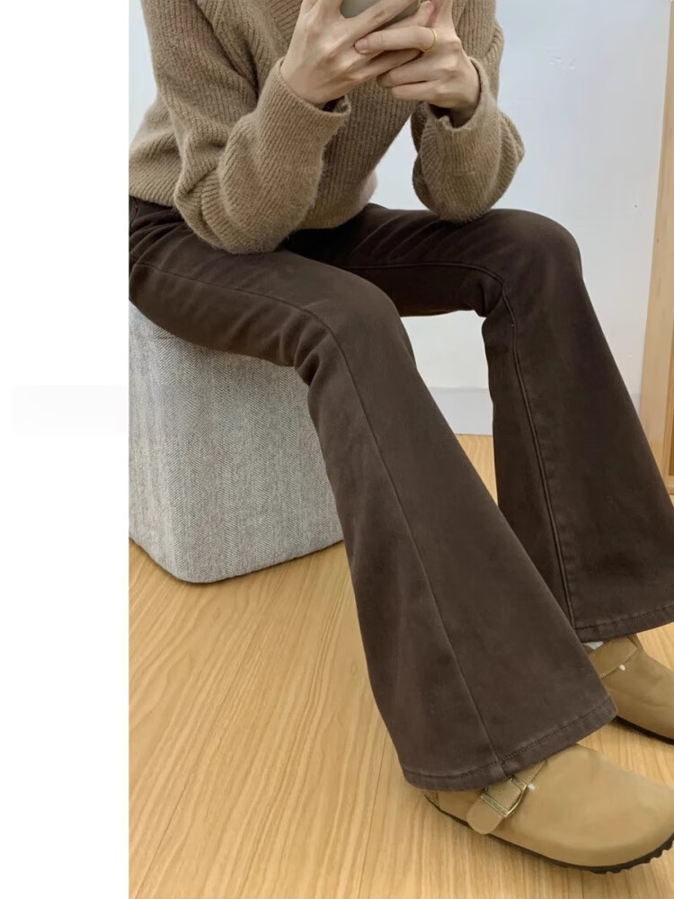 Cotton plus velvet thickened Maillard high-waisted micro-flare jeans for women in autumn and winter new straight slim flared casual pants S386 brown plus velvet high quality L 110-120Jin Jin is equal to 0.5 kg