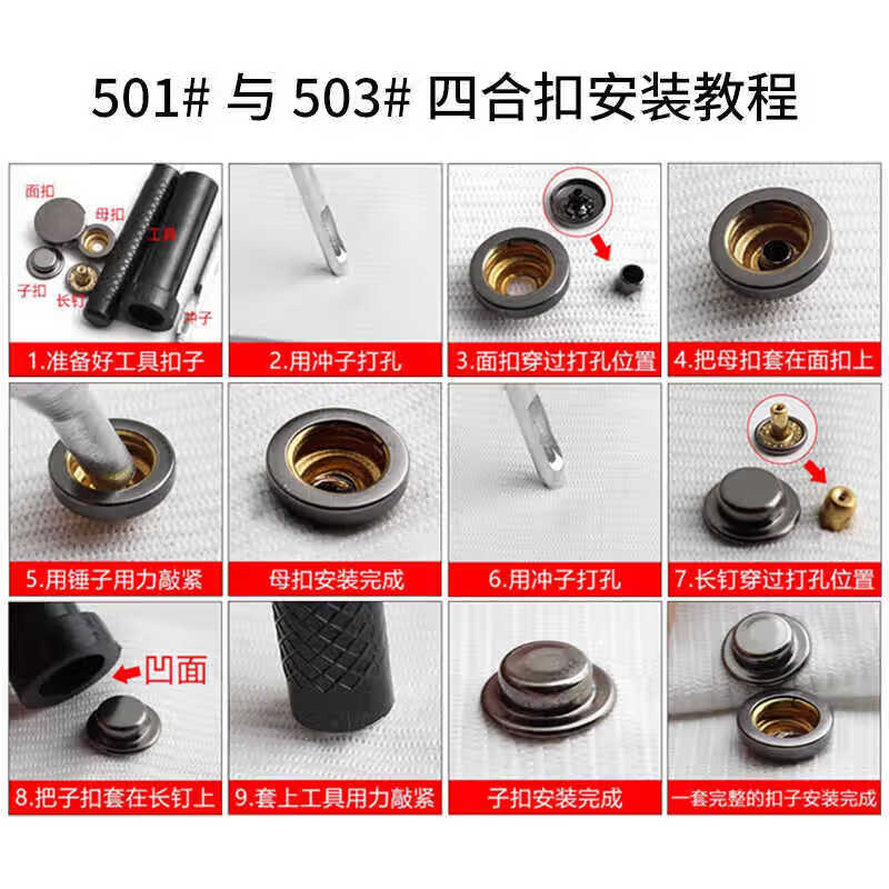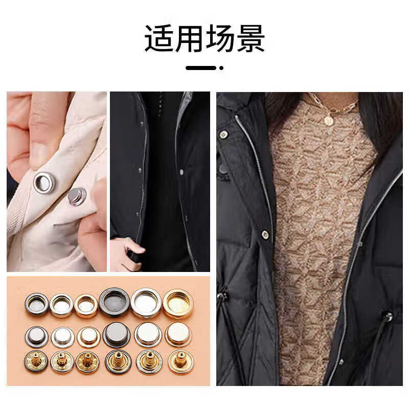 Beautifully made concealed metal down jacket buttons, push-type four-in-one buttons, female buttons, no-seam buttons, coat buttons, sweater buttons, silver, 6 pairs, free tools, 15mm face buckle + hollow 501 bottom buckle