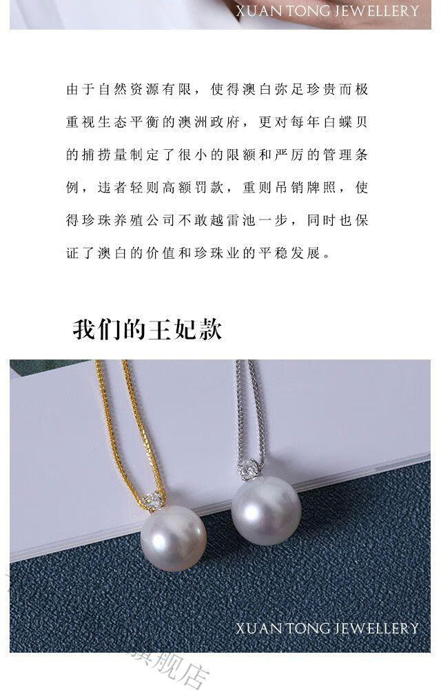 Zhizhou Henghui guaranteed price seawater pearl pendant Australian White Princess Nanyang White 925 silver necklace is round and large 925 silver gold-plated round beads 14mm
