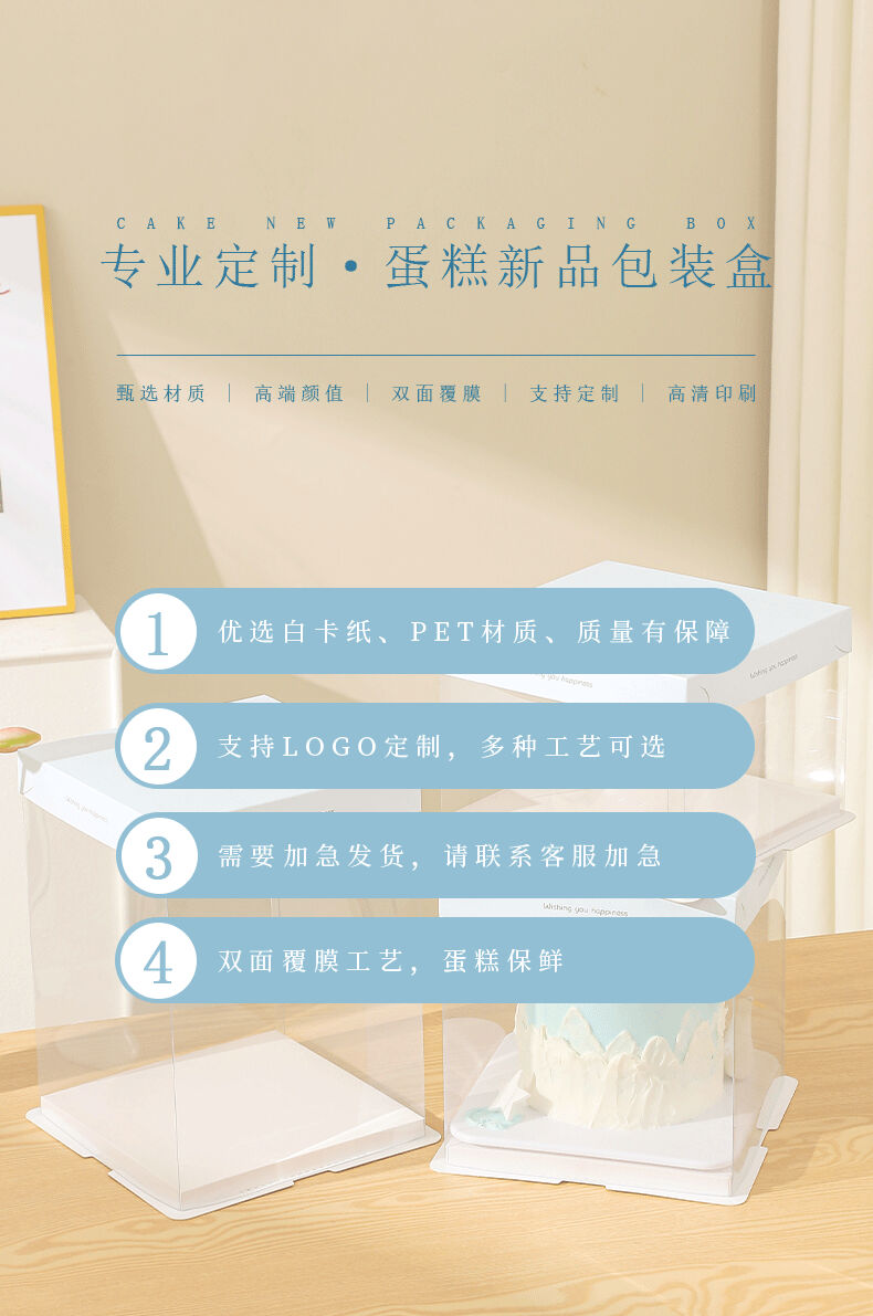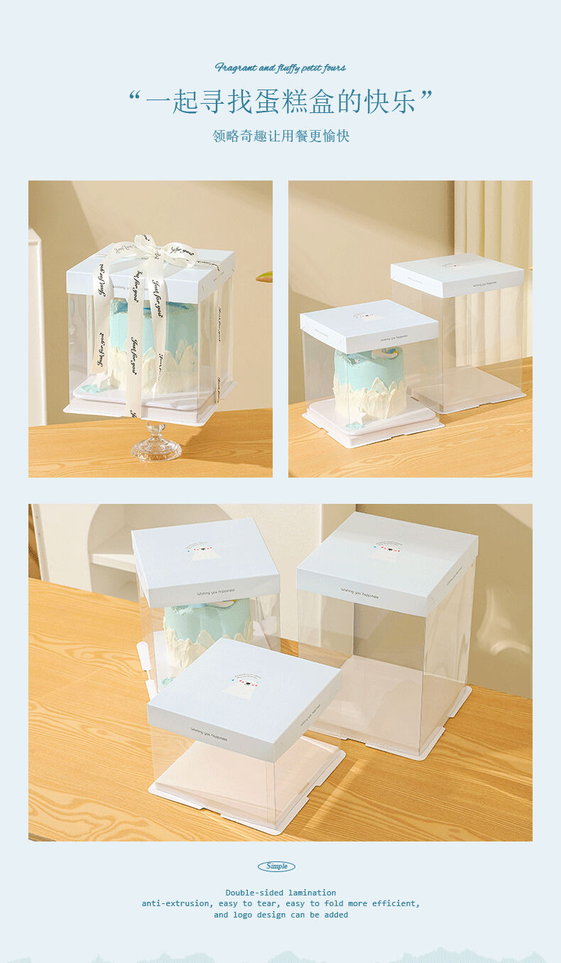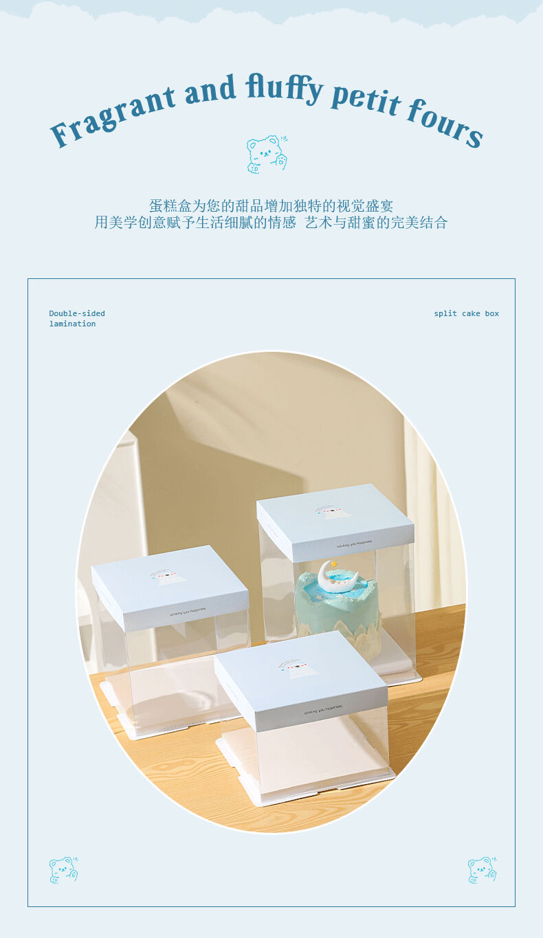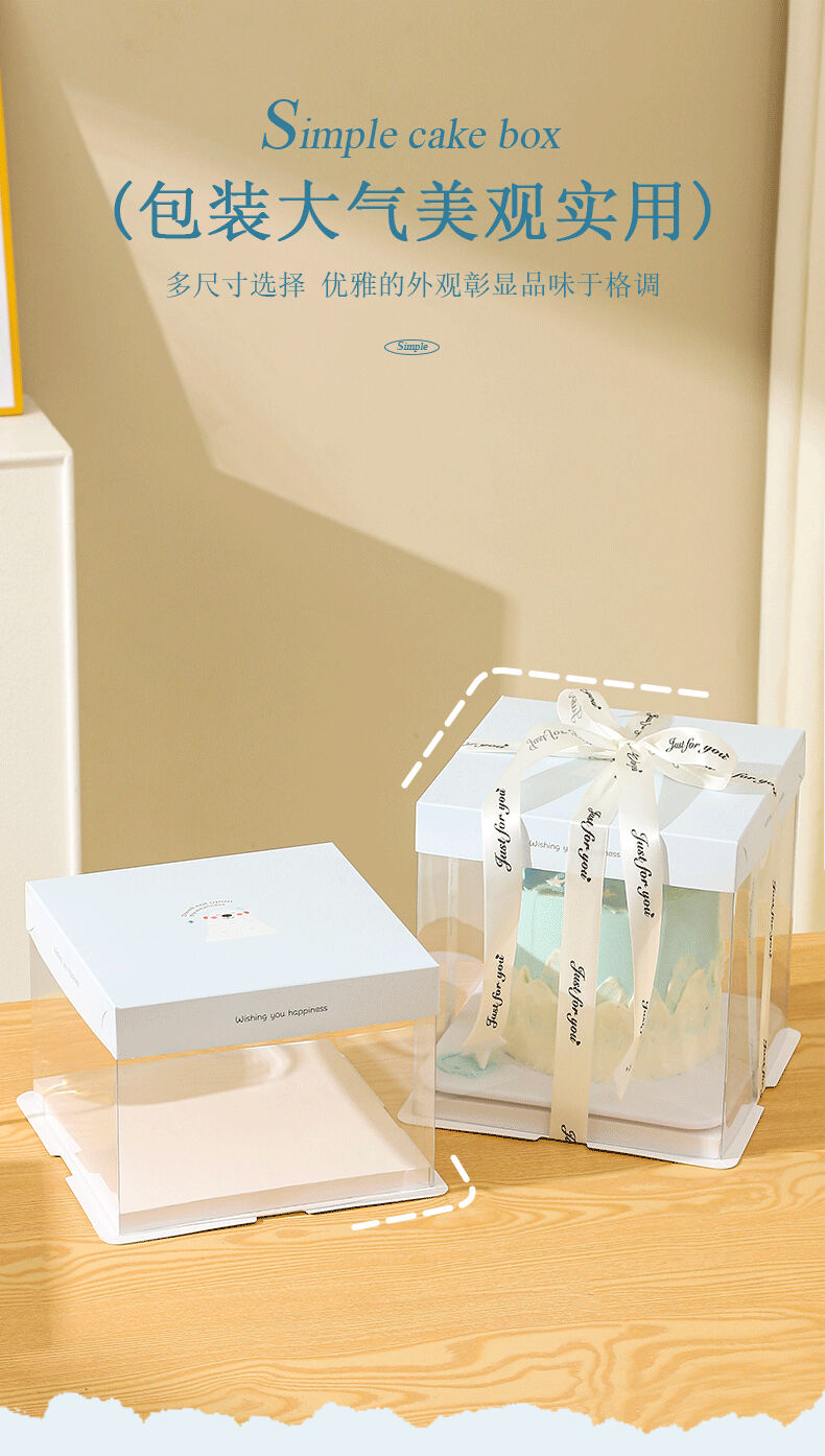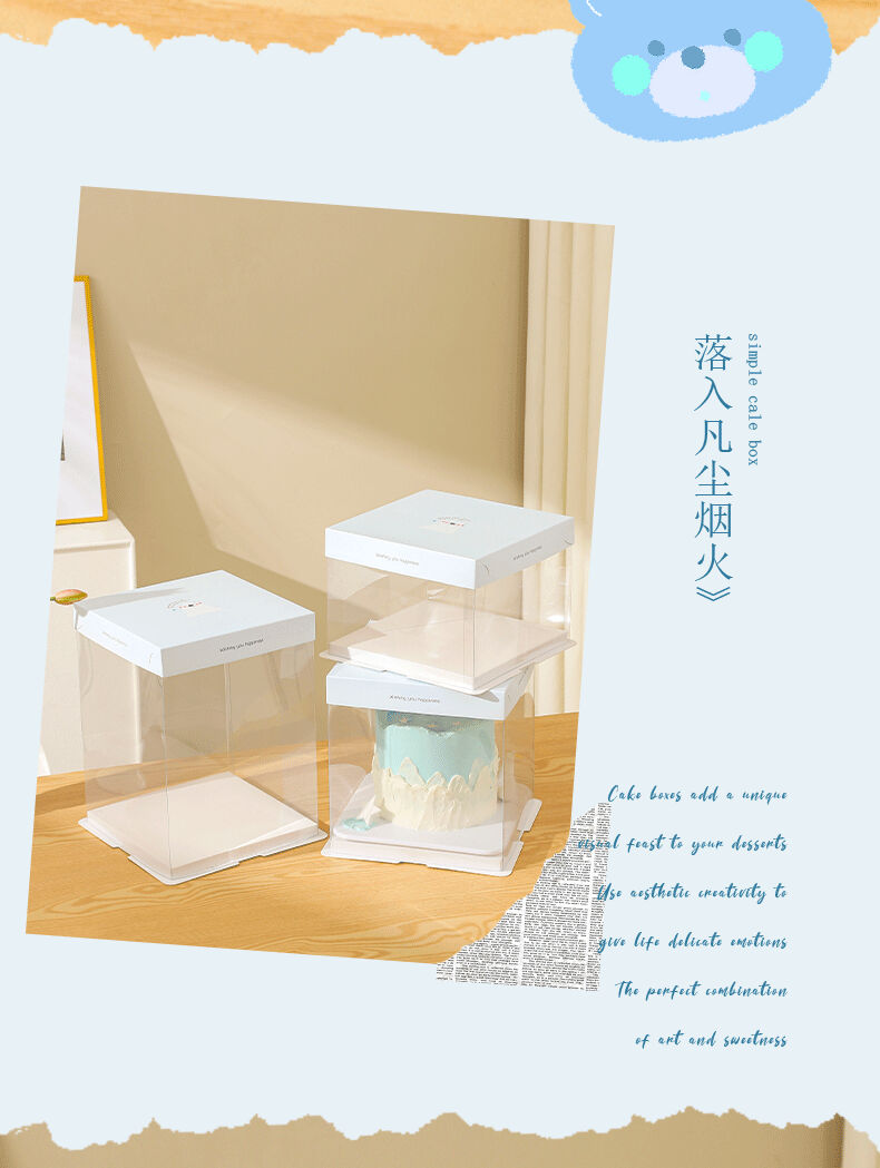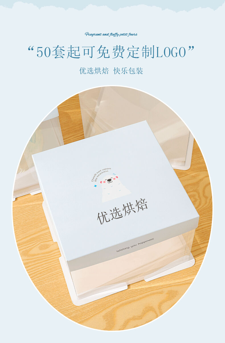 Cake box packaging birthday 6 inches 4 inches 8 inches 10 inches 12 inches 4 inches 6 inches 8 inches transparent little white bear 50 set 8 inches plus height 26*26*30cm
