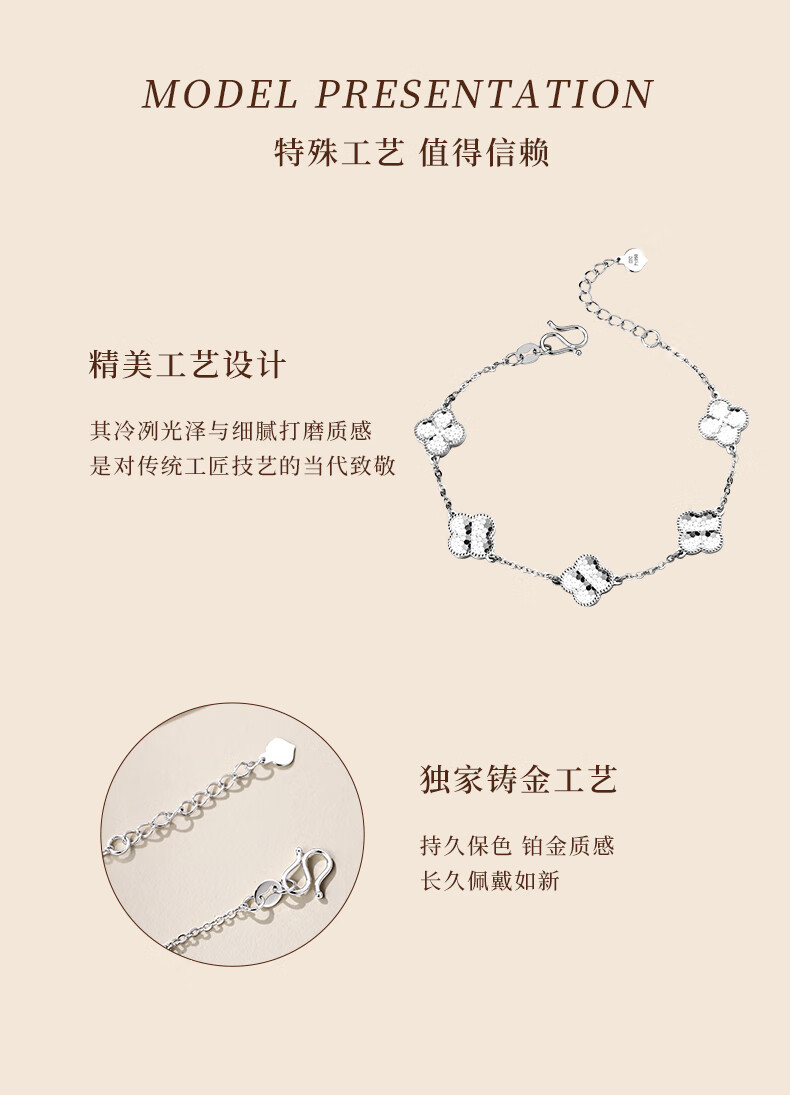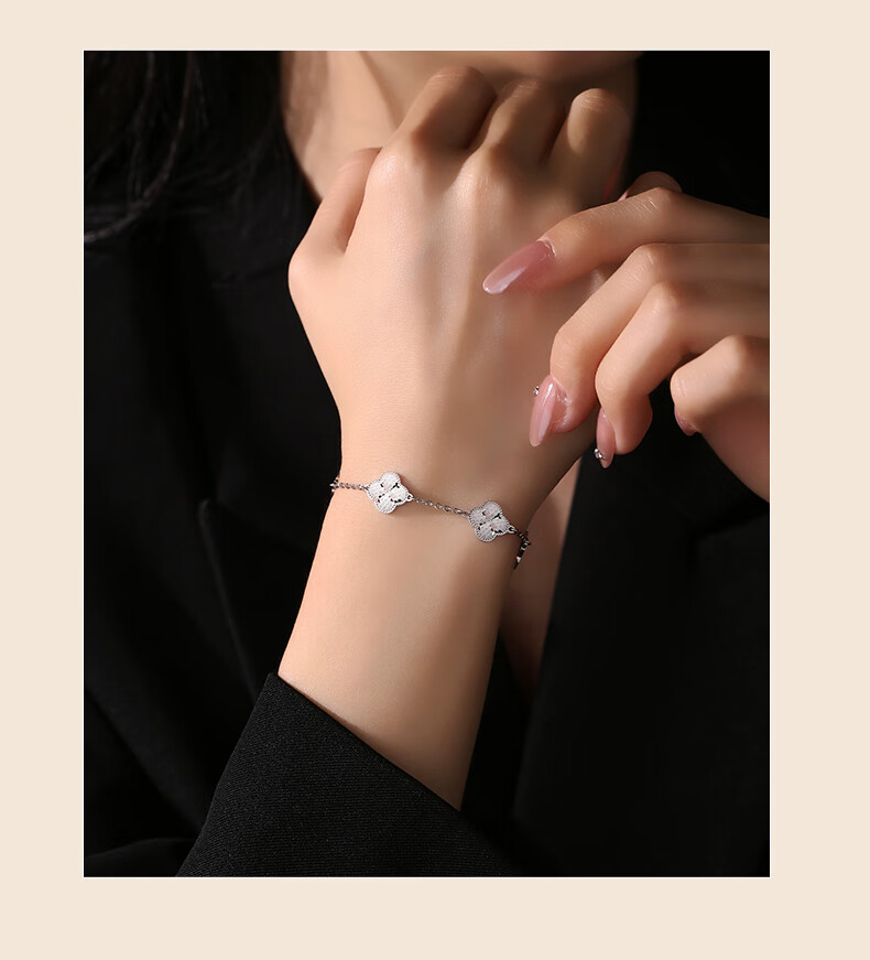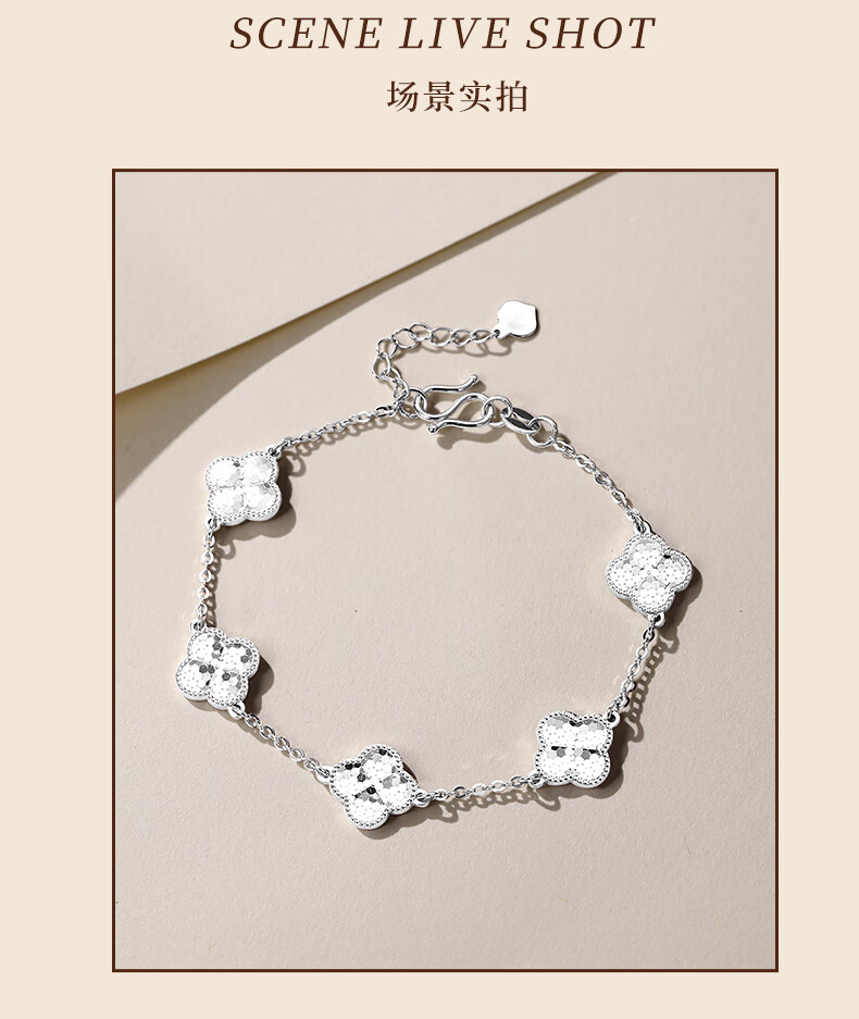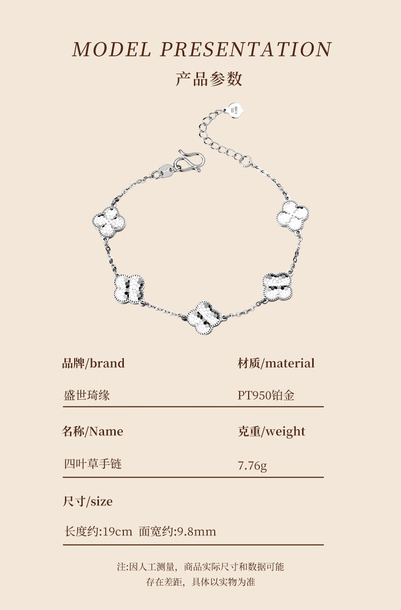 Shengshi Qiyuan platinum bracelet for women pt950 pure platinum bracelet platinum five-flower bracelet sparkling four-leaf clover bracelet for girlfriend 7.76g length 16.5-19cm adjustable