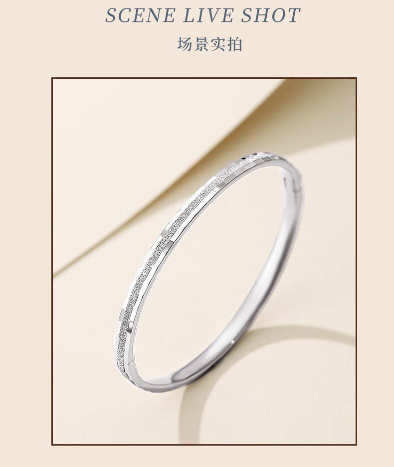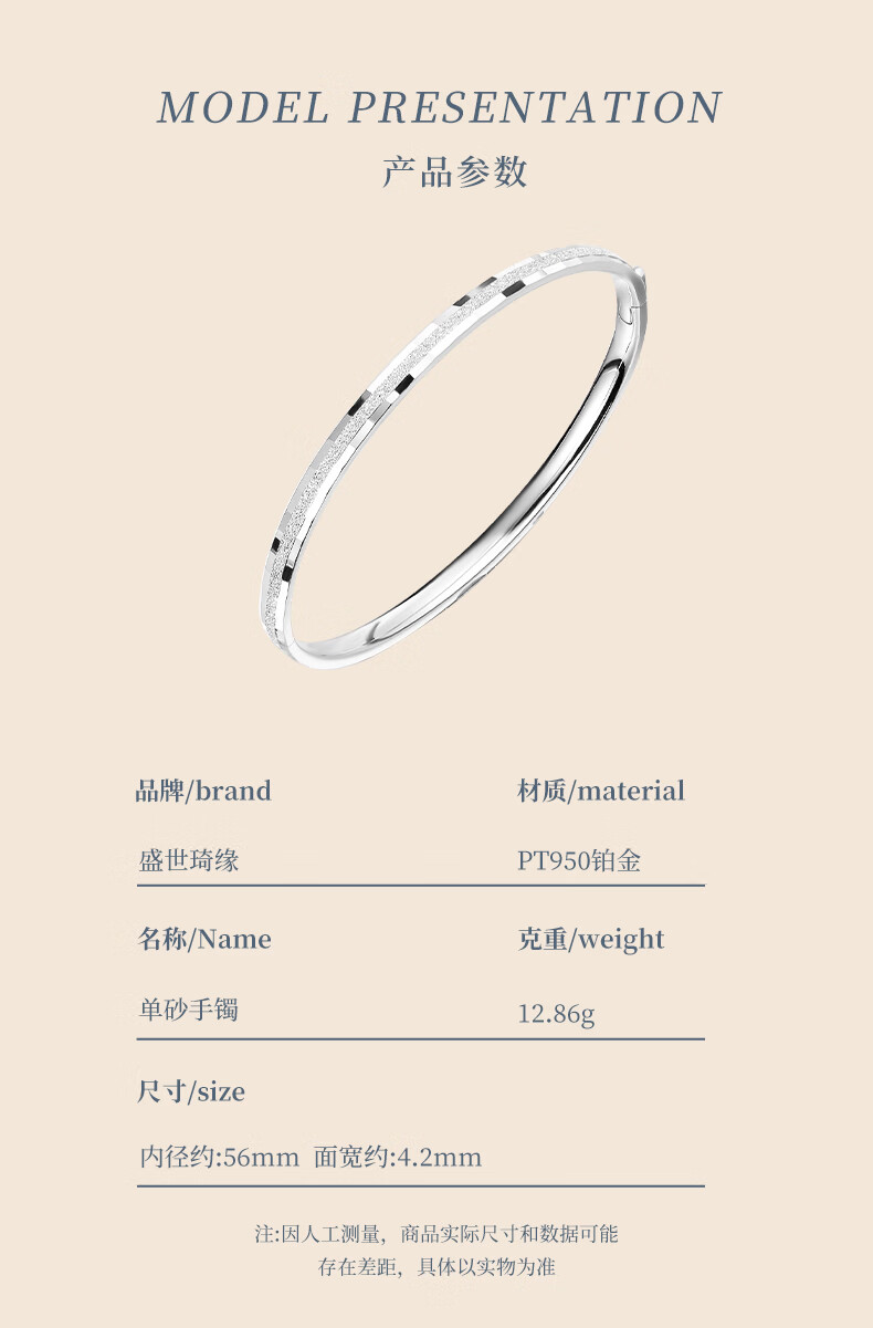 Shengshi Qiyuan pt950 platinum bracelet, concubine bracelet, pure platinum bracelet, platinum bracelet, new semi-solid flashing single sand bracelet, inner diameter 52mm, weight 6.1 grams, about 3mm thick