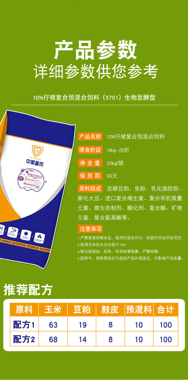 Sino-US Puke 10 piglet premix small piglet suckling pig feed medium and large pig fattening nutrition special feed 10 piglet thrive 10 premix 20kg