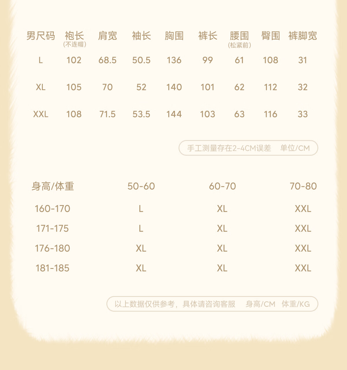 China (cm) 165 / 88-90 170 / 96-98 175 / 108-110 180 / 118-122 185 / 126-130