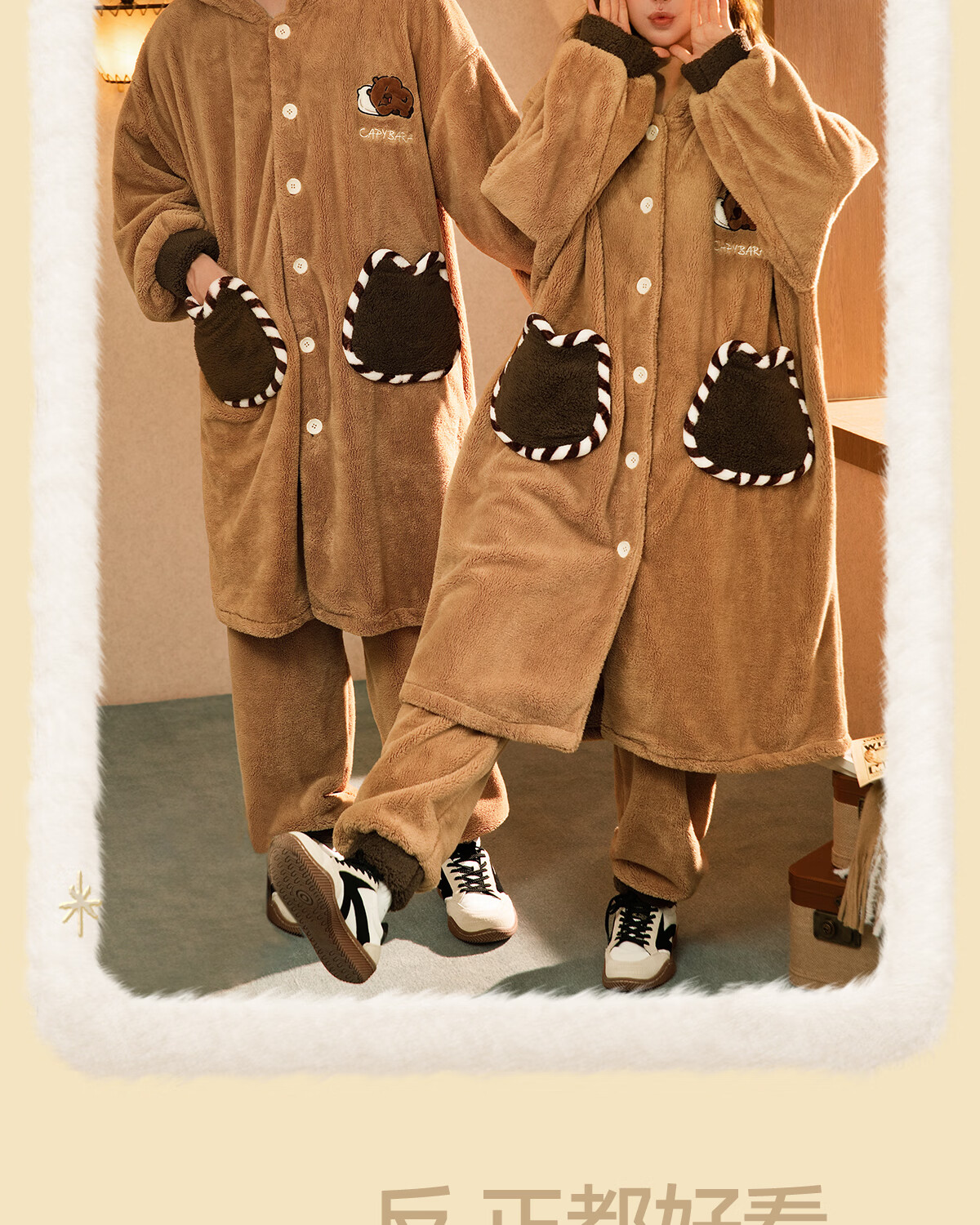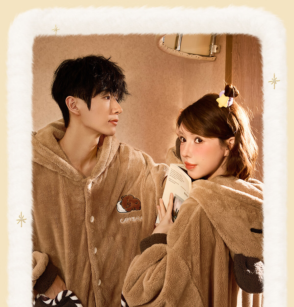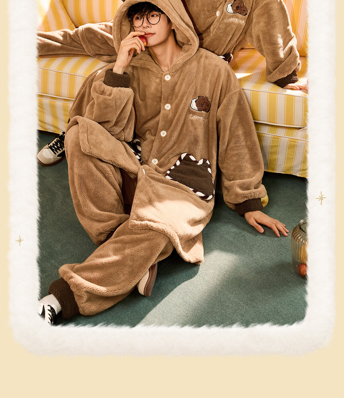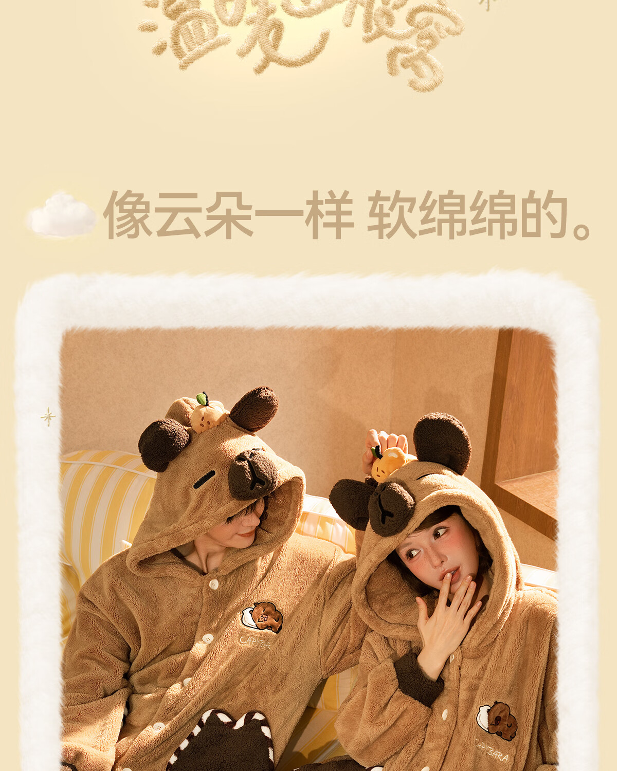 Gongdie Thermal Storage Capibala Autumn and Winter Couple Pajamas Women's Thickened Coral Velvet Cartoon Men's Home Clothes Capibala Pajamas Set Men's 2XL (Recommended 140-160 Jin Jin equals 0.5 kg)