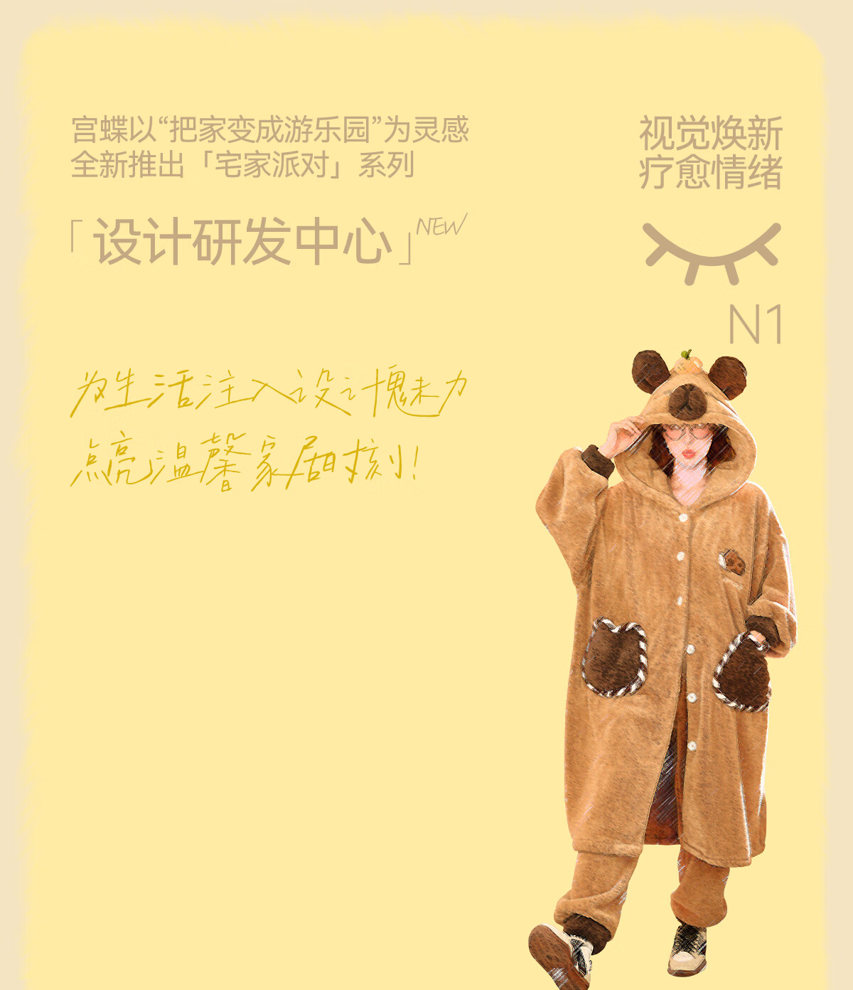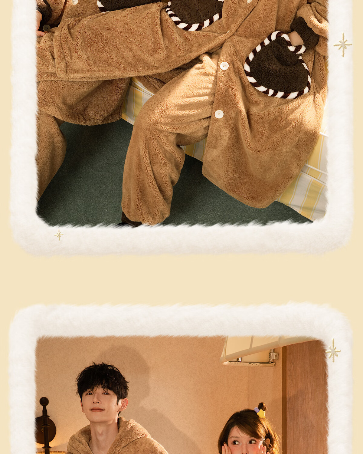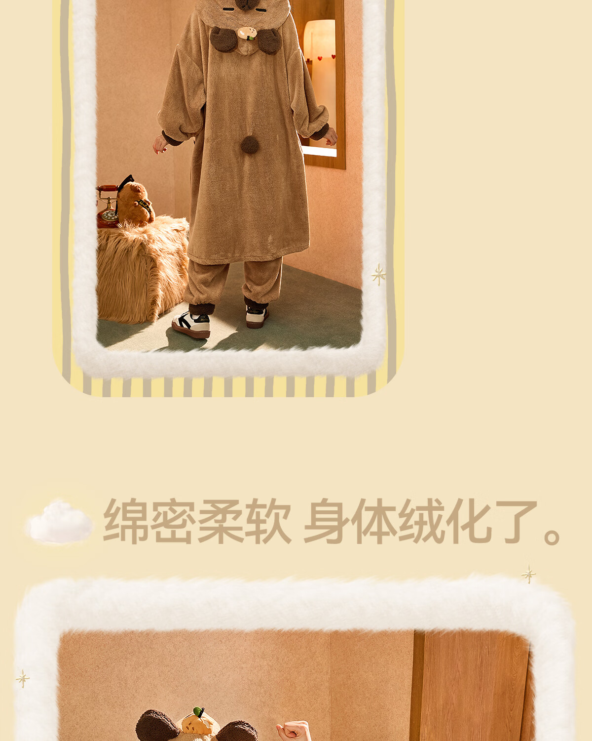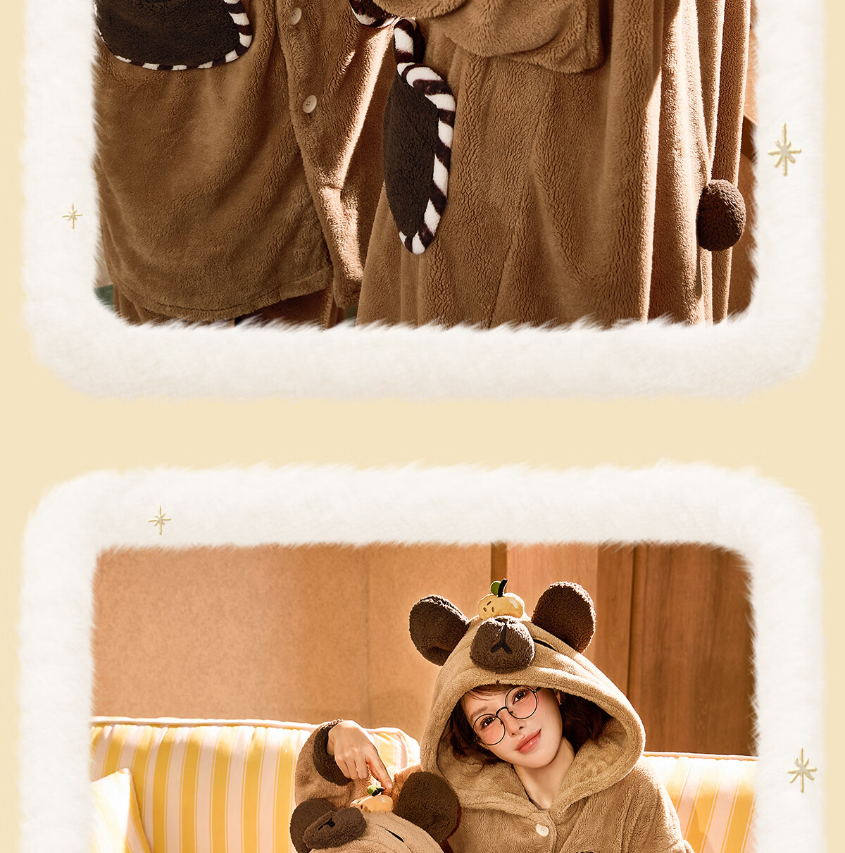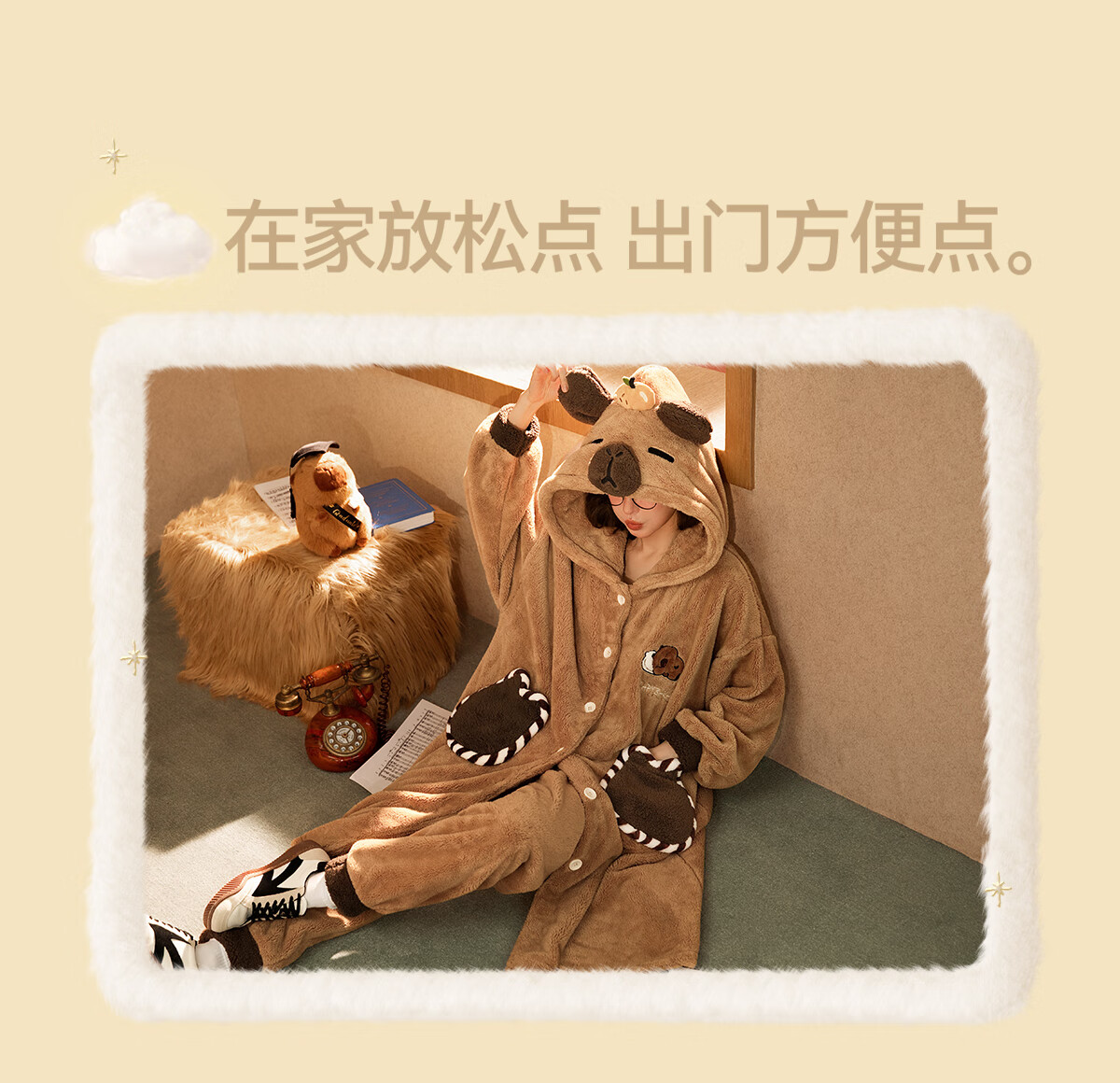 Gongdie Thermal Storage Capibala Autumn and Winter Couple Pajamas Women's Thickened Coral Velvet Cartoon Men's Home Clothes Capibala Pajamas Set Men's 2XL (Recommended 140-160 Jin Jin equals 0.5 kg)