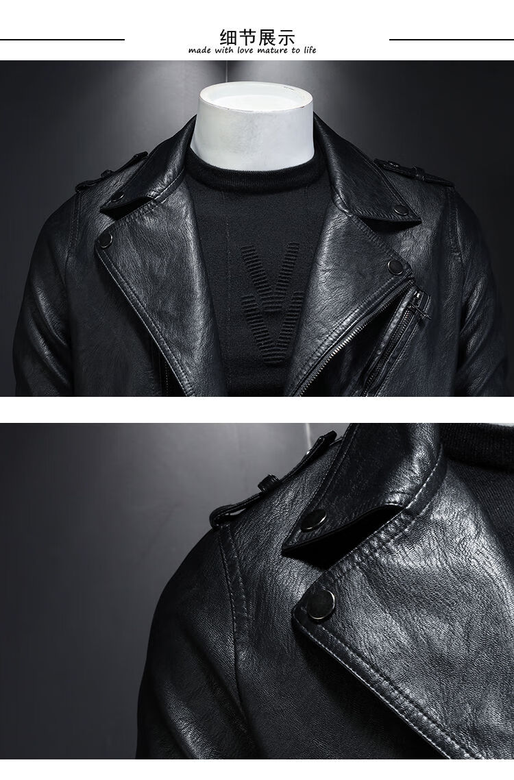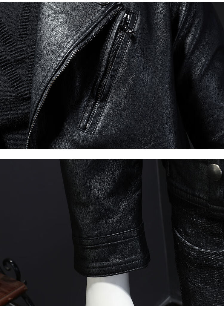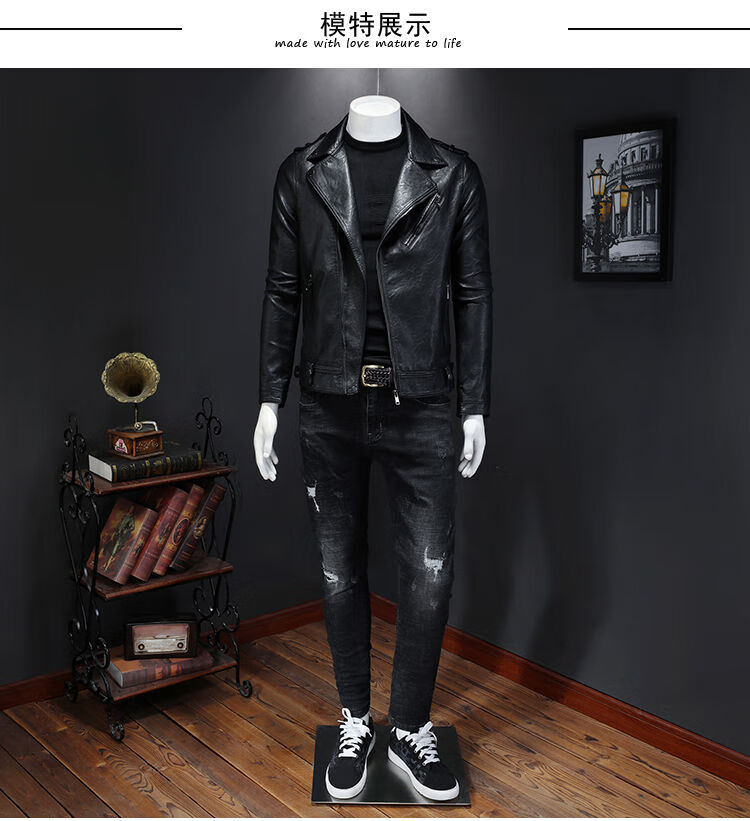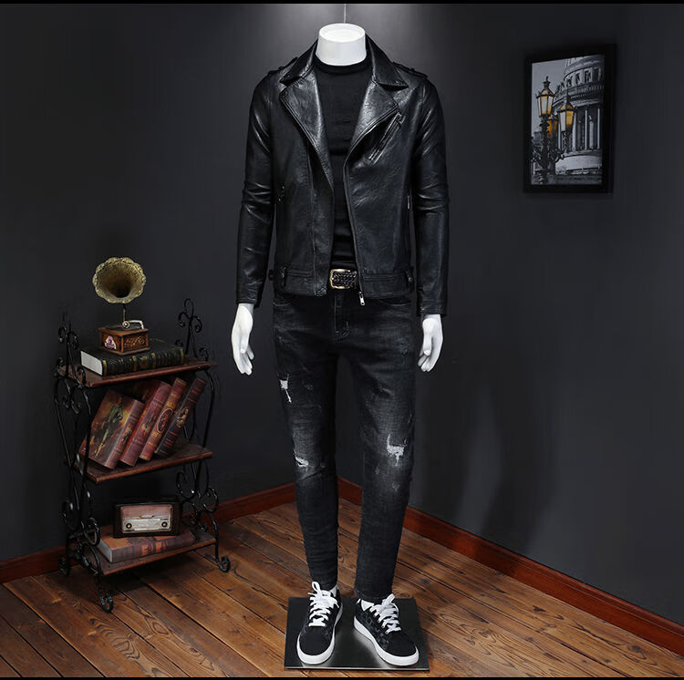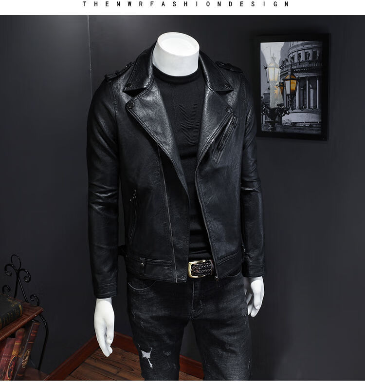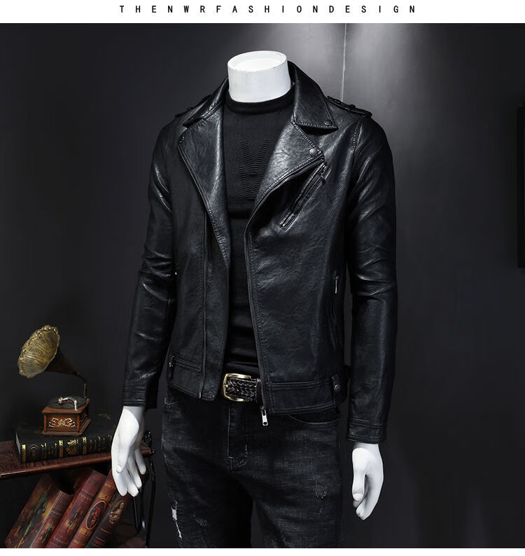 Motorcycle Soft Leather Jacket Men's Trendy Jacket Lapel Cycling Slim Korean Style Handsome Haining Street Rock Harley Black Regular Style M M