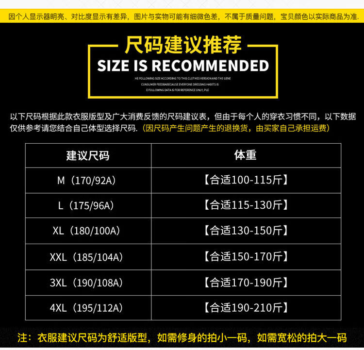 China (cm) 165 / 88-90 170 / 96-98 175 / 108-110 180 / 118-122 185 / 126-130
