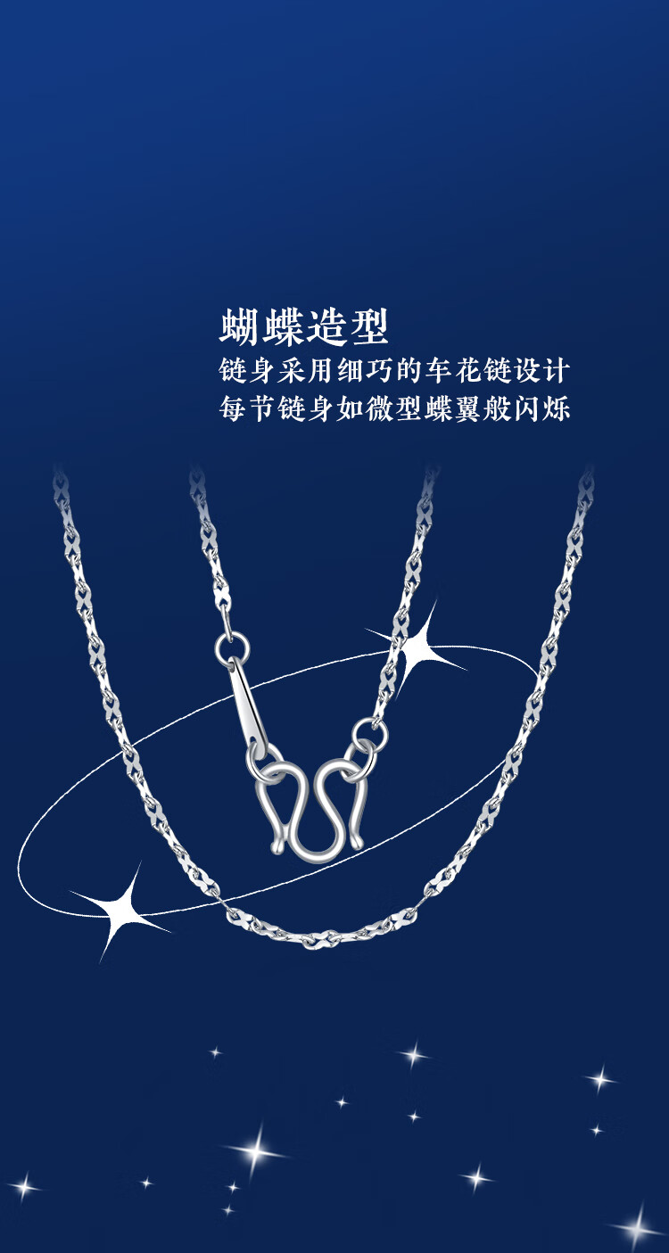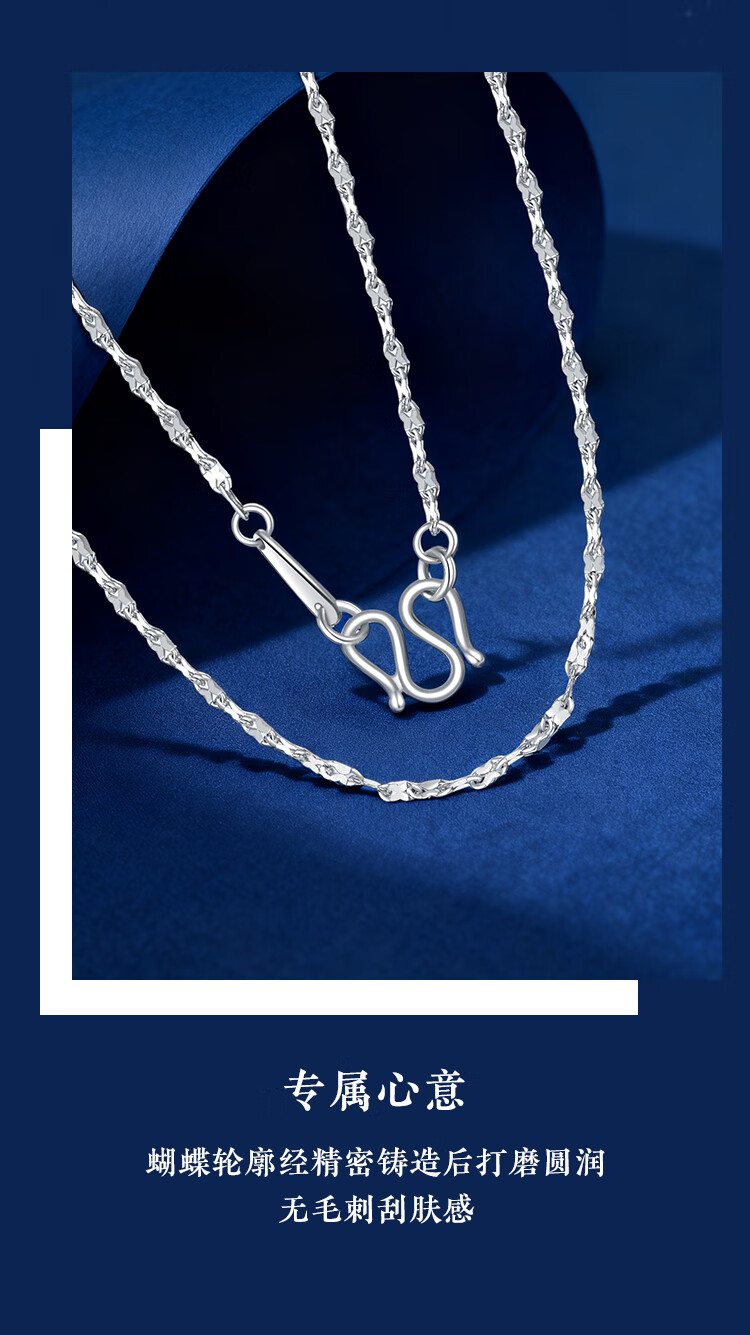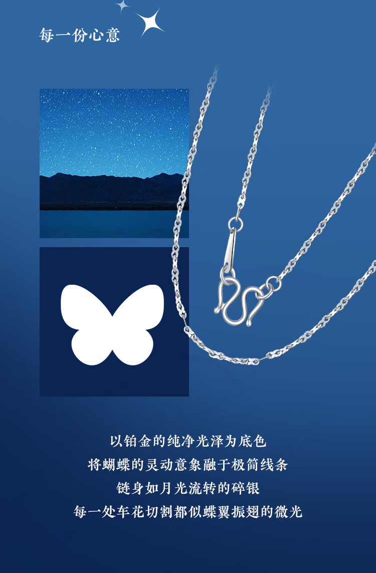 Wanfulong genuine platinum PT950 simple and fashionable butterfly platinum necklace high-end light luxury niche 2025 new gift 45cm, platinum PT950 butterfly platinum necklace 2.26g