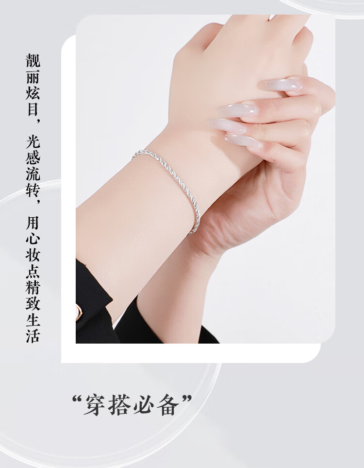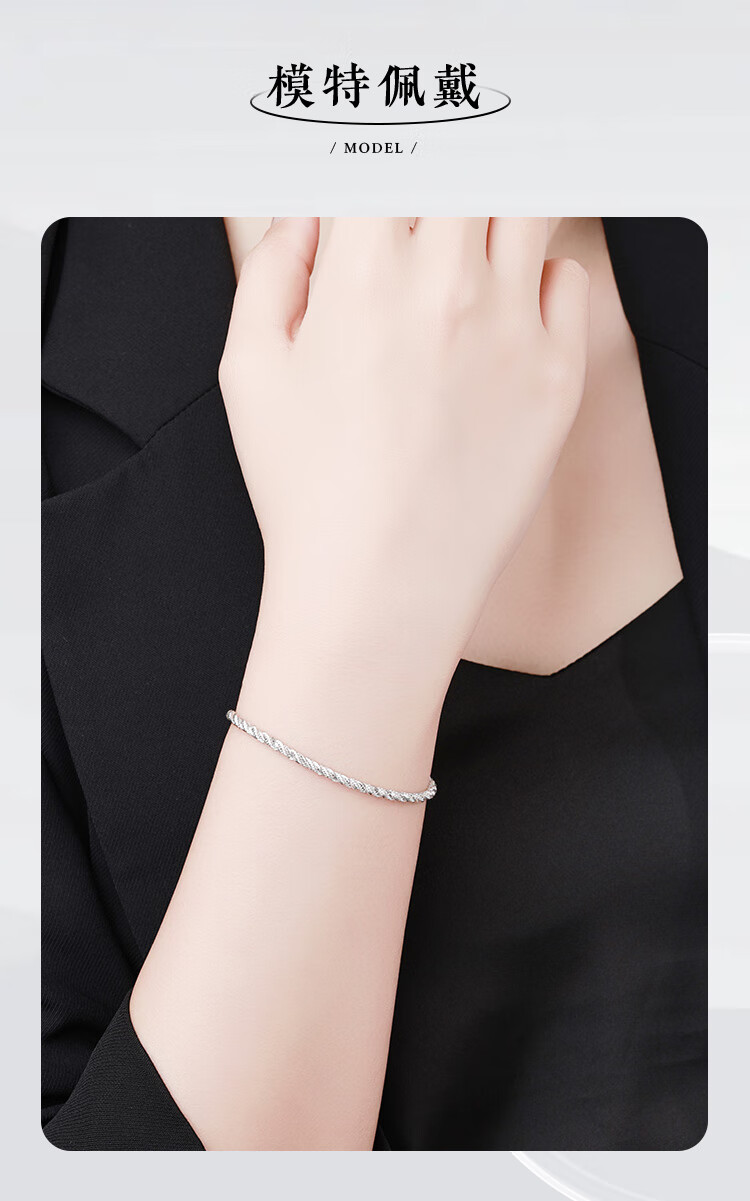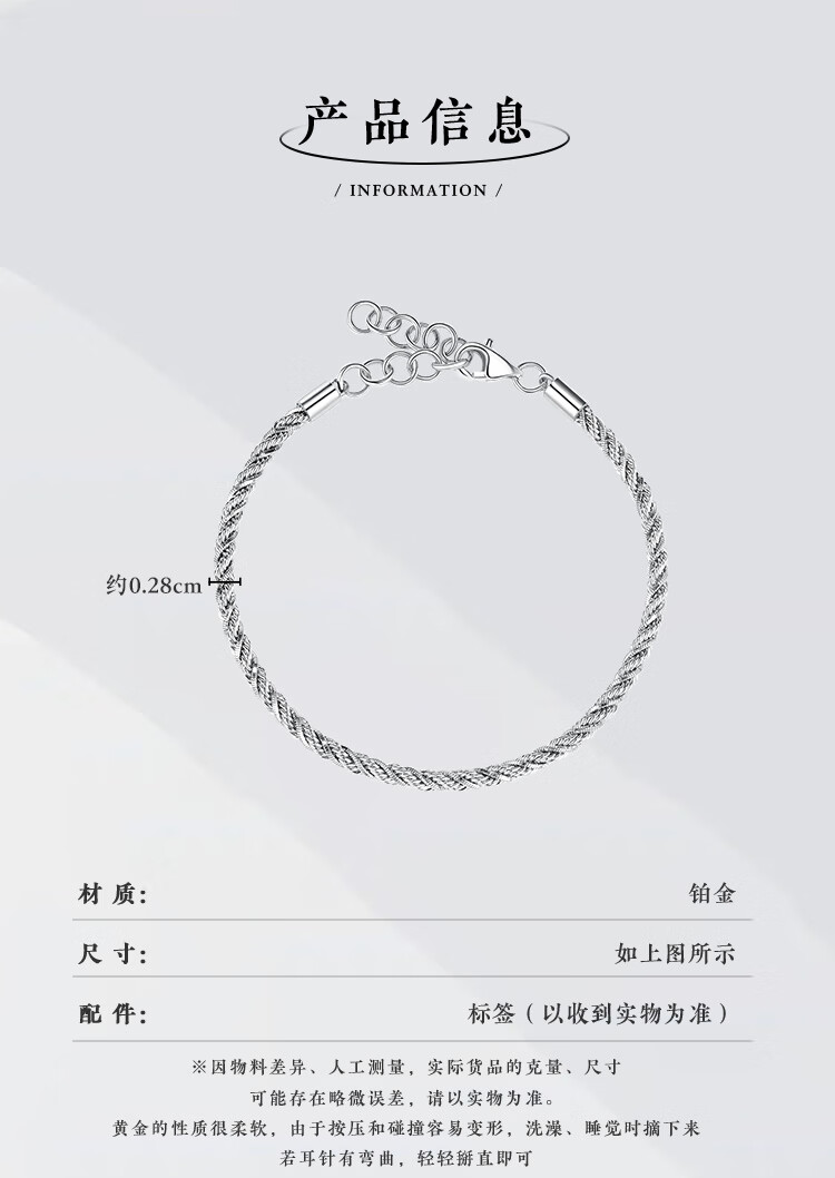 Wanfulong platinum PT950 simple and fashionable twist platinum bracelet light luxury niche exquisite women's model 2025 new style gift 10.7g 19cm
