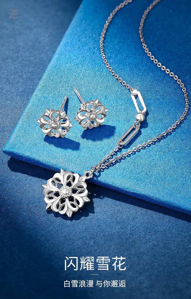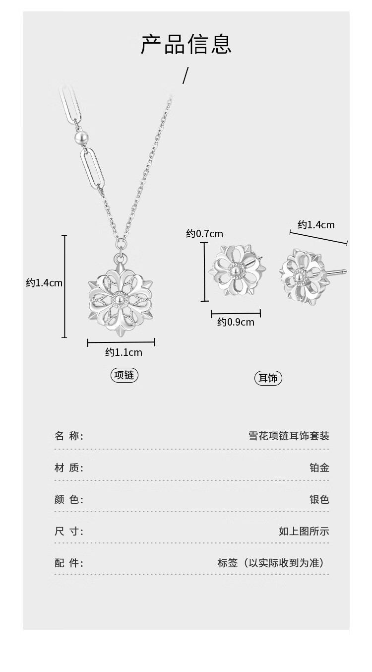 Wanfulong versatile platinum earrings PT950 earrings, earrings, earrings, earrings, snowflake female commuter birthday gift for girlfriend, snowflake earrings 2.14g