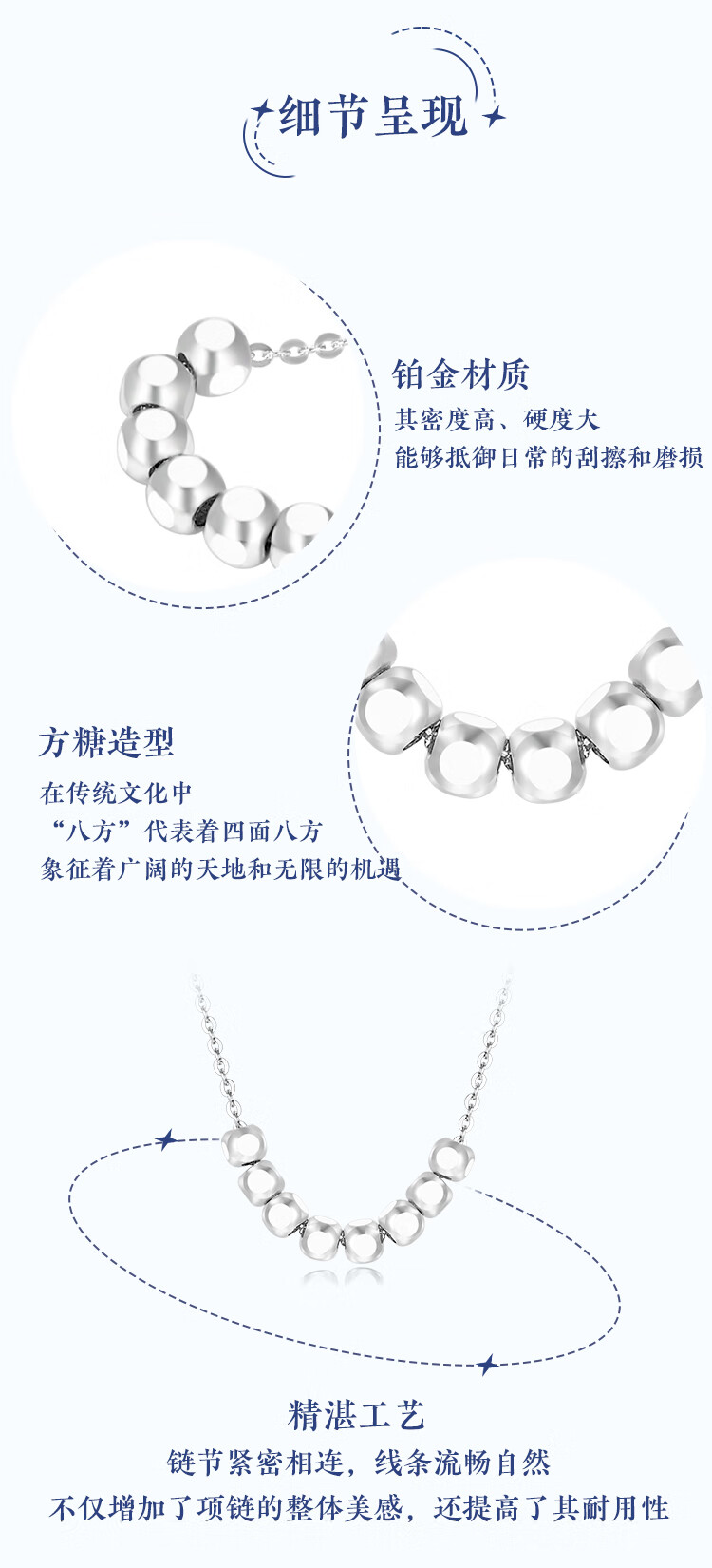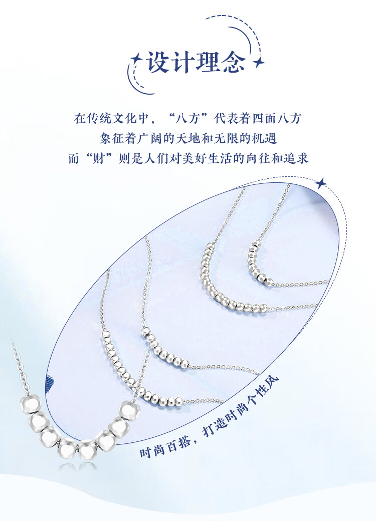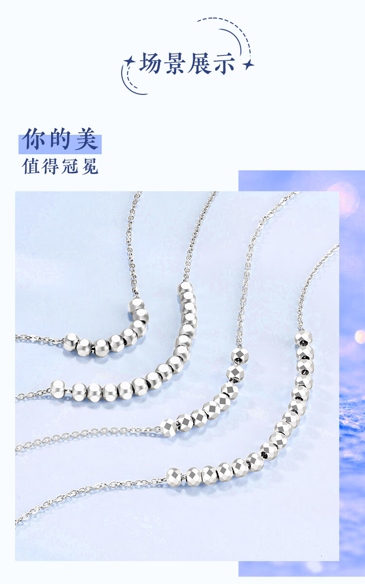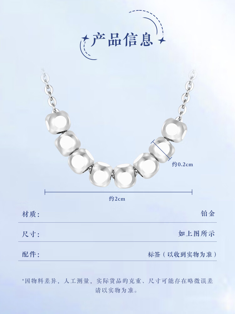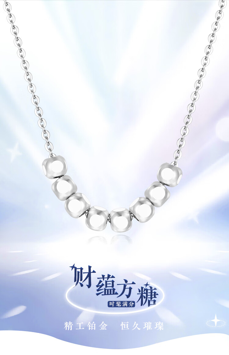 Wanfulong Wealth Star in the Arms PT950 Platinum Necklace Bafanglai Bundi Transfer Beads Platinum Necklace Good Luck Gift 45cm, Platinum 950 Sugar Cube Transfer Beads Platinum Necklace 3.25g