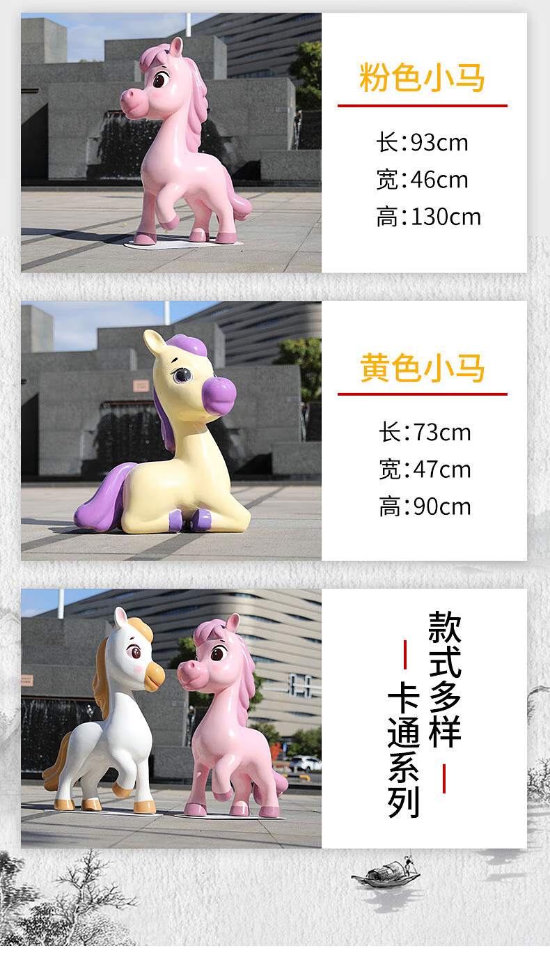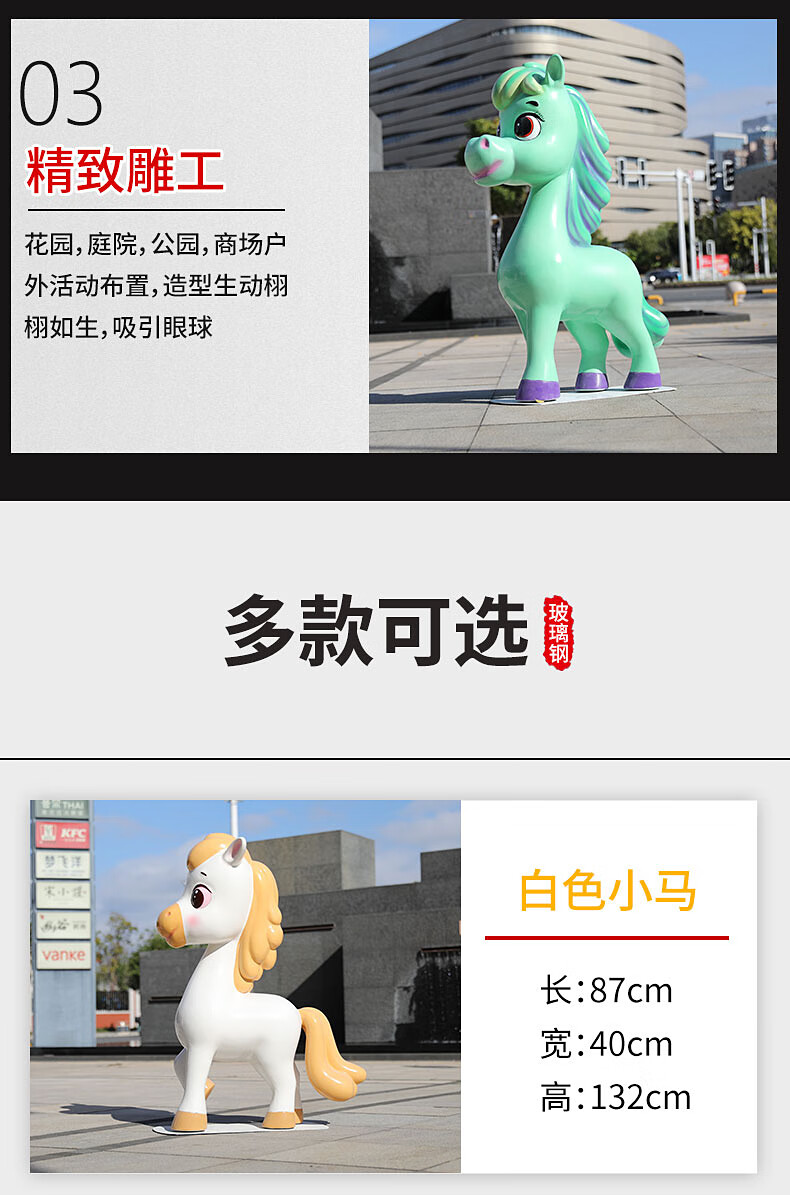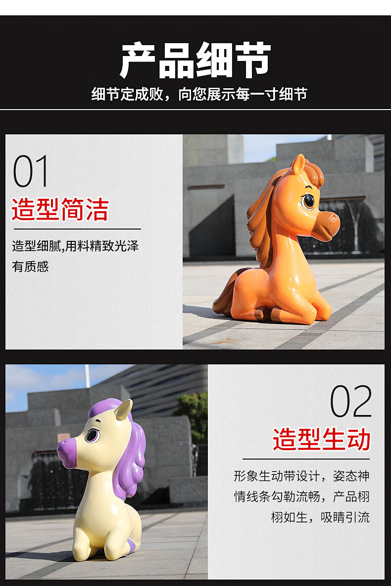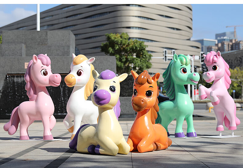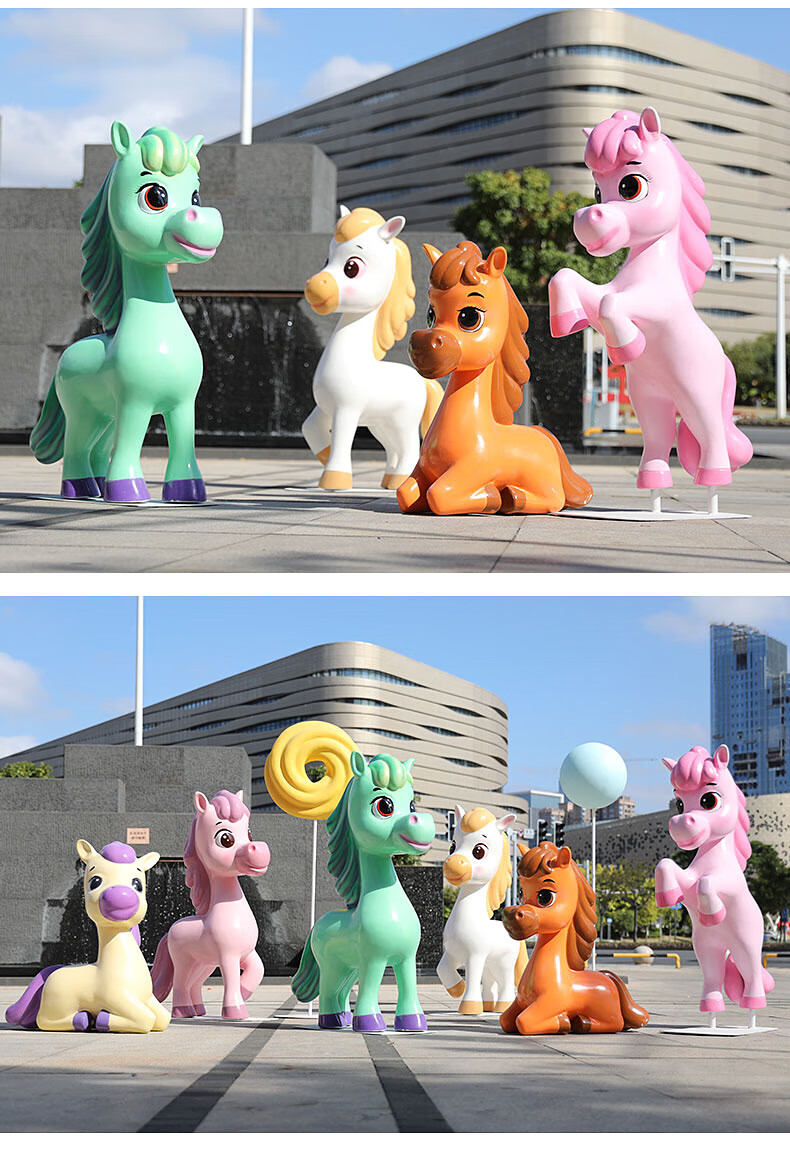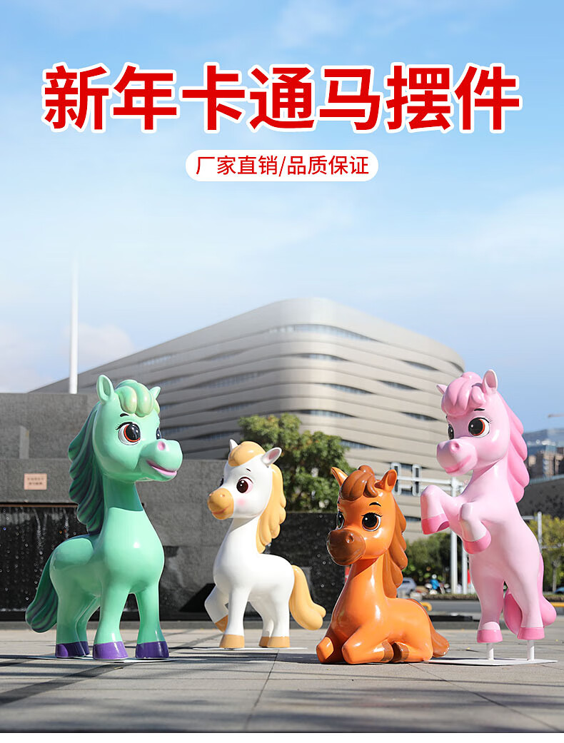 Shangyi 2026 Fiberglass Cartoon Horse Sculpture Commercial Space Festival Display Shopping Mall Plaza Cartoon Theme Decoration Ornaments Customized