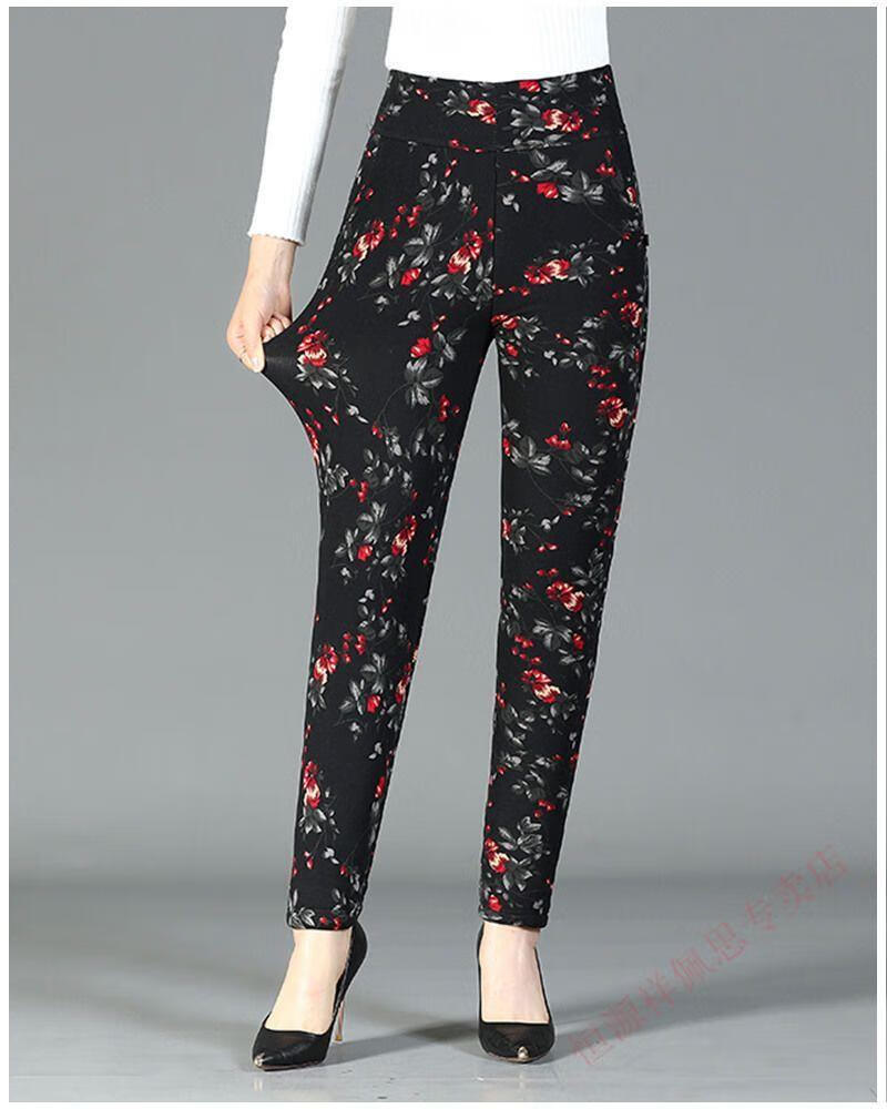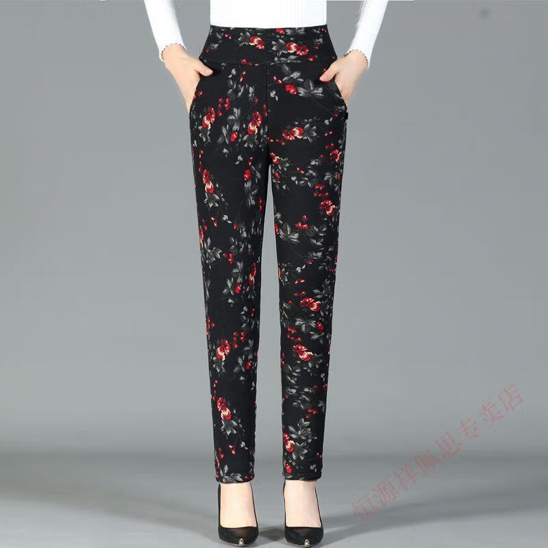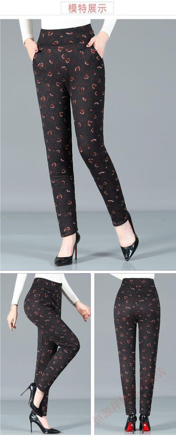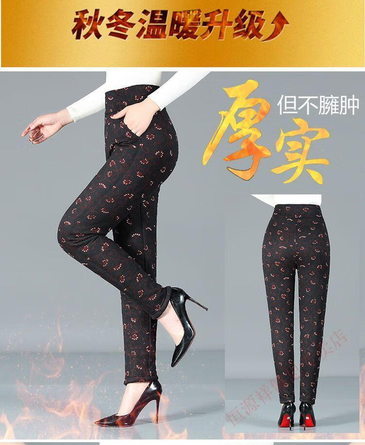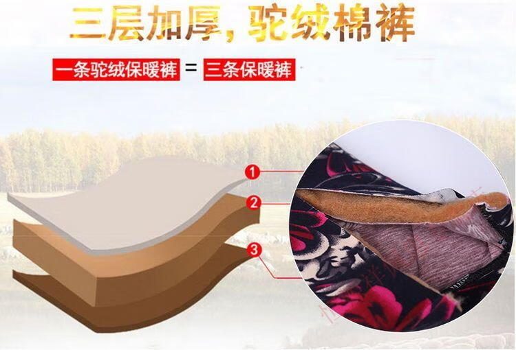 Hengyuanxiang middle-aged mother camel hair cotton pants winter plus velvet thickened three-layer cotton pants high-waisted large size thermal pants outer wear cotton pants for women Xiaohonghua three-layer thickened cotton pants 3XL recommended 110-135Jin Jin equals 0.5 kg to wear