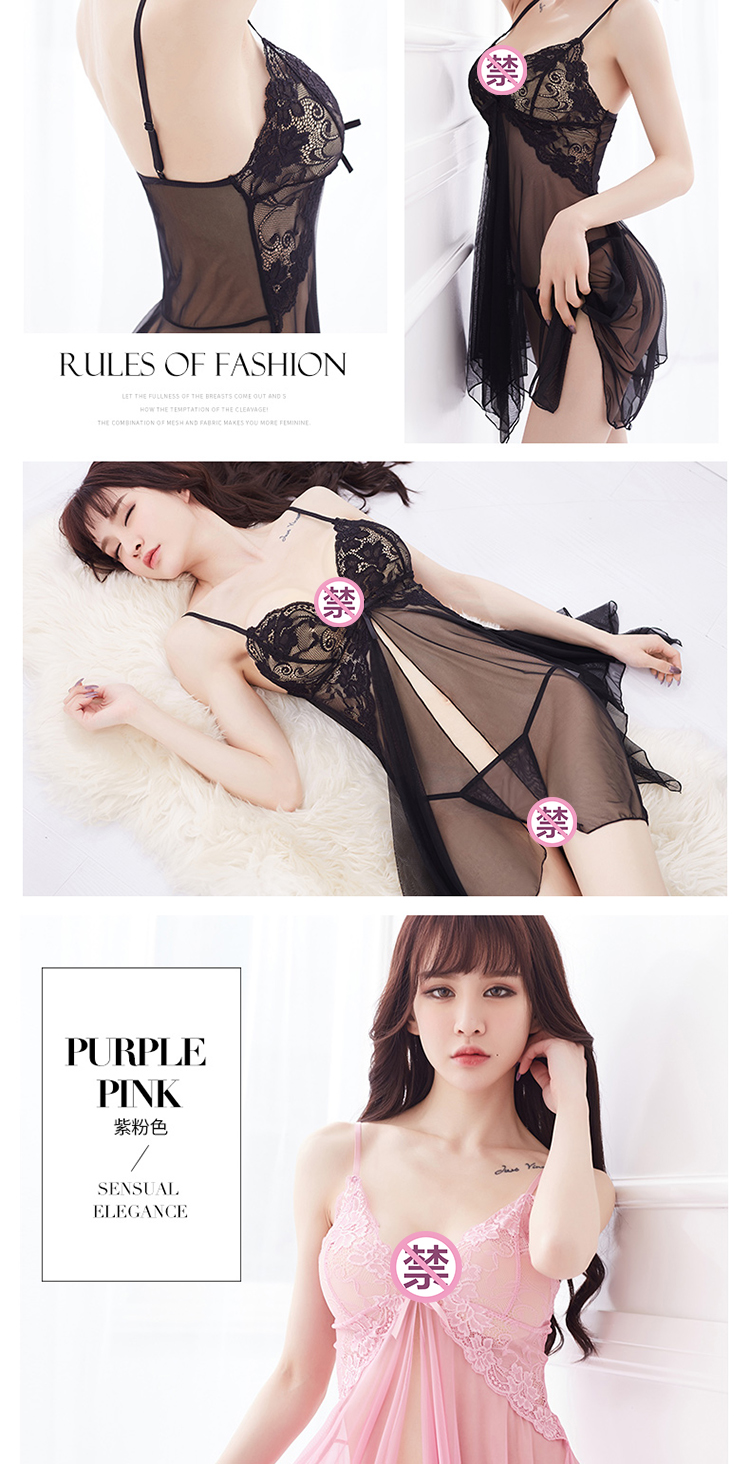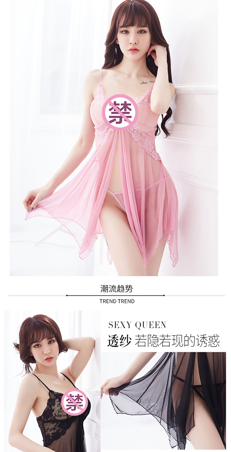 Jiumu Yadai sexy underwear women's temptation sexy pajamas autumn and winter open thong fully transparent blood drops S size charming black nightgown + thong