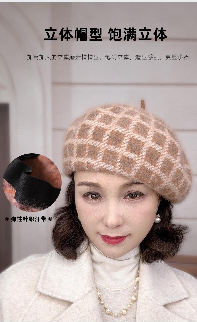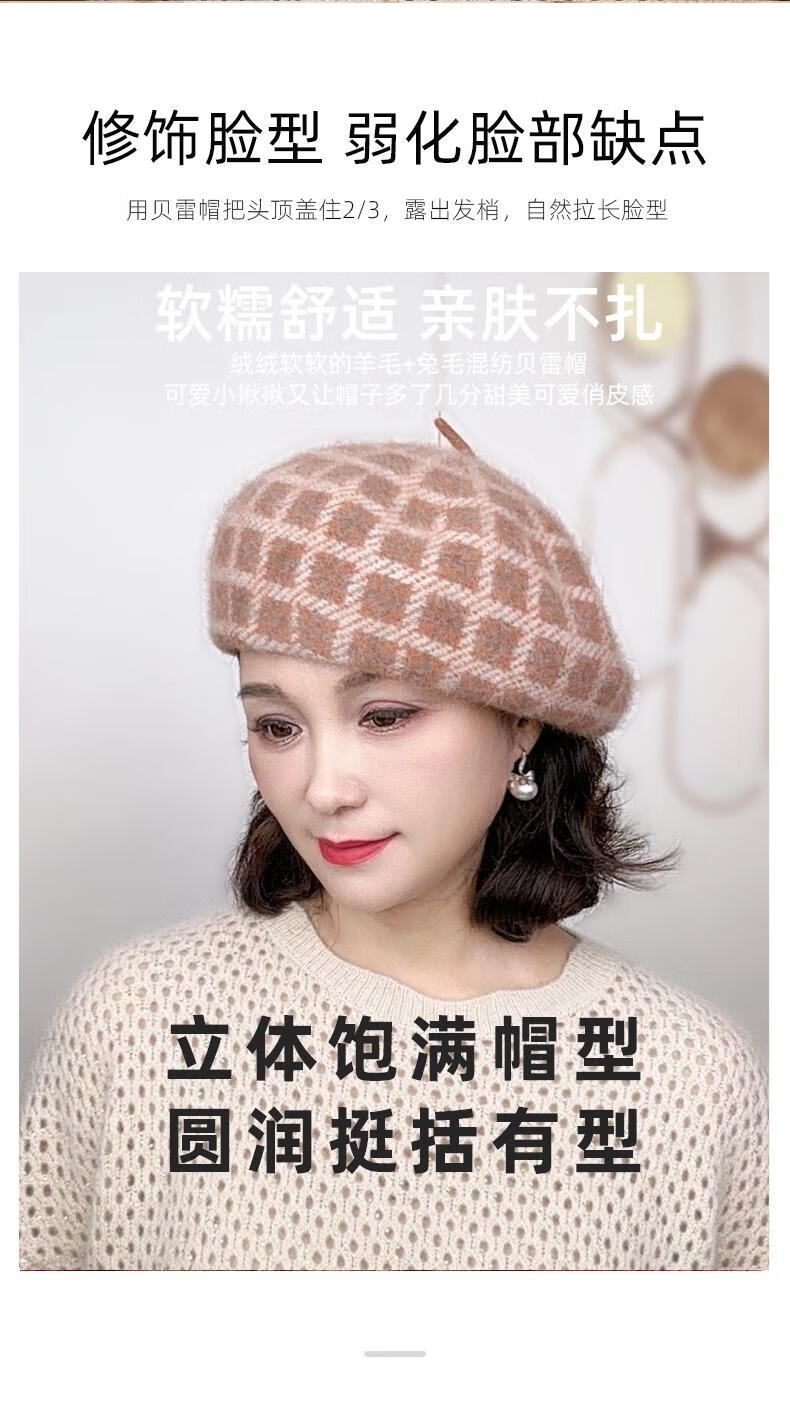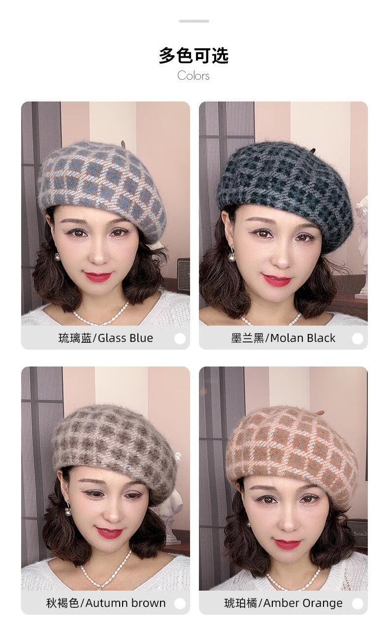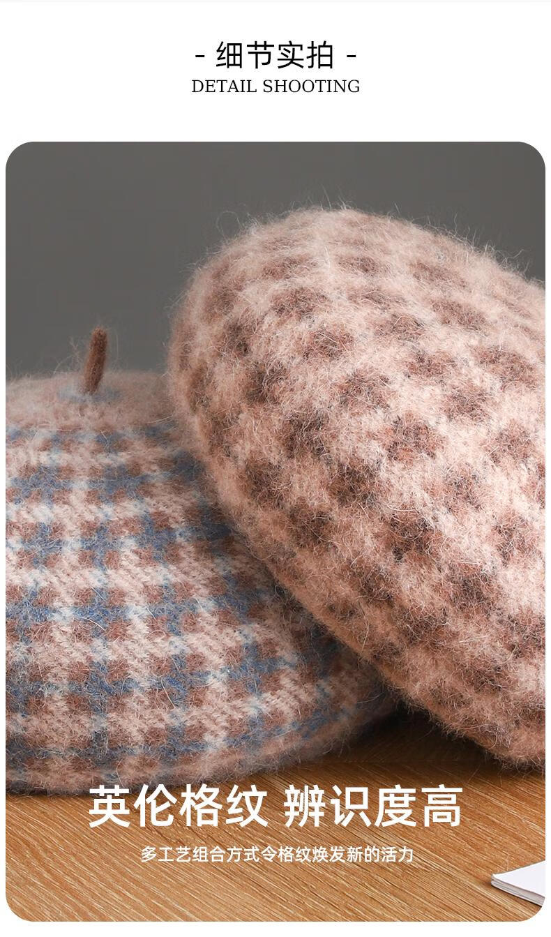 Lan Shiyu Hat Women's Autumn and Winter Wool Beret British Classic Plaid Bere Hat Fashion Versatile Shopping Warm Pumpkin Hat Glazed Blue One Size 52-60CM