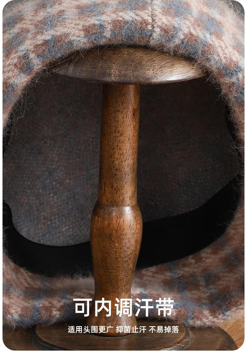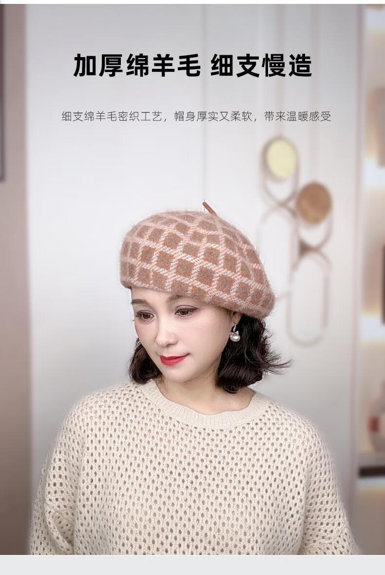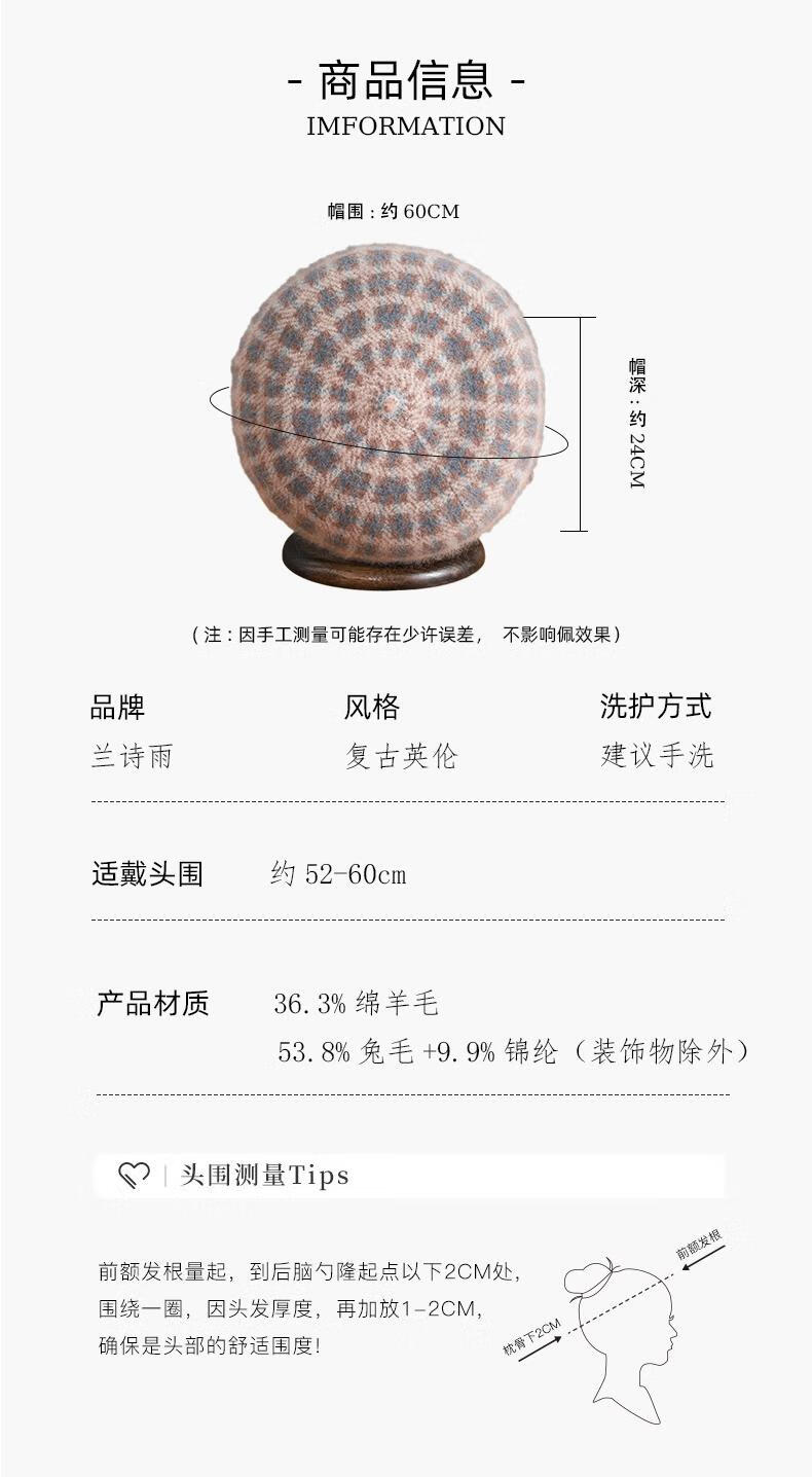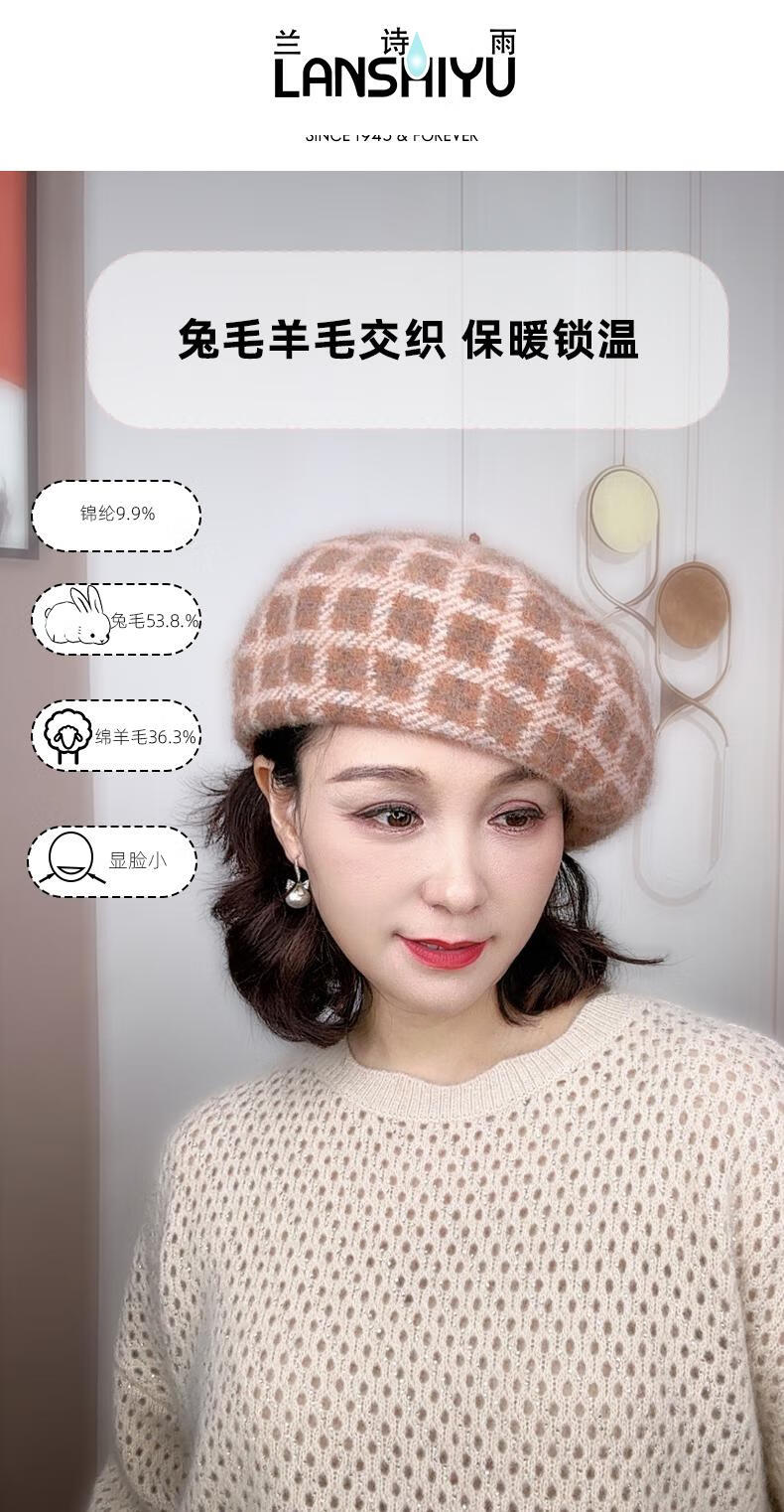 Lan Shiyu Hat Women's Autumn and Winter Wool Beret British Classic Plaid Bere Hat Fashion Versatile Shopping Warm Pumpkin Hat Glazed Blue One Size 52-60CM