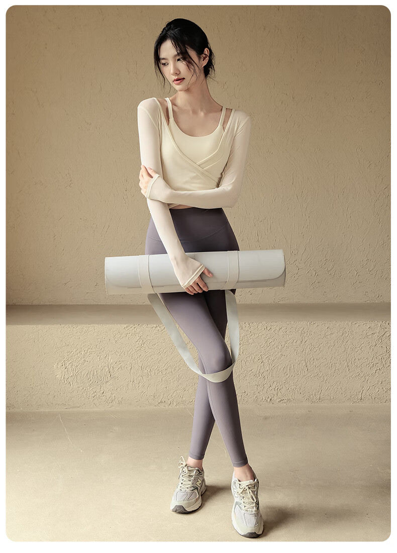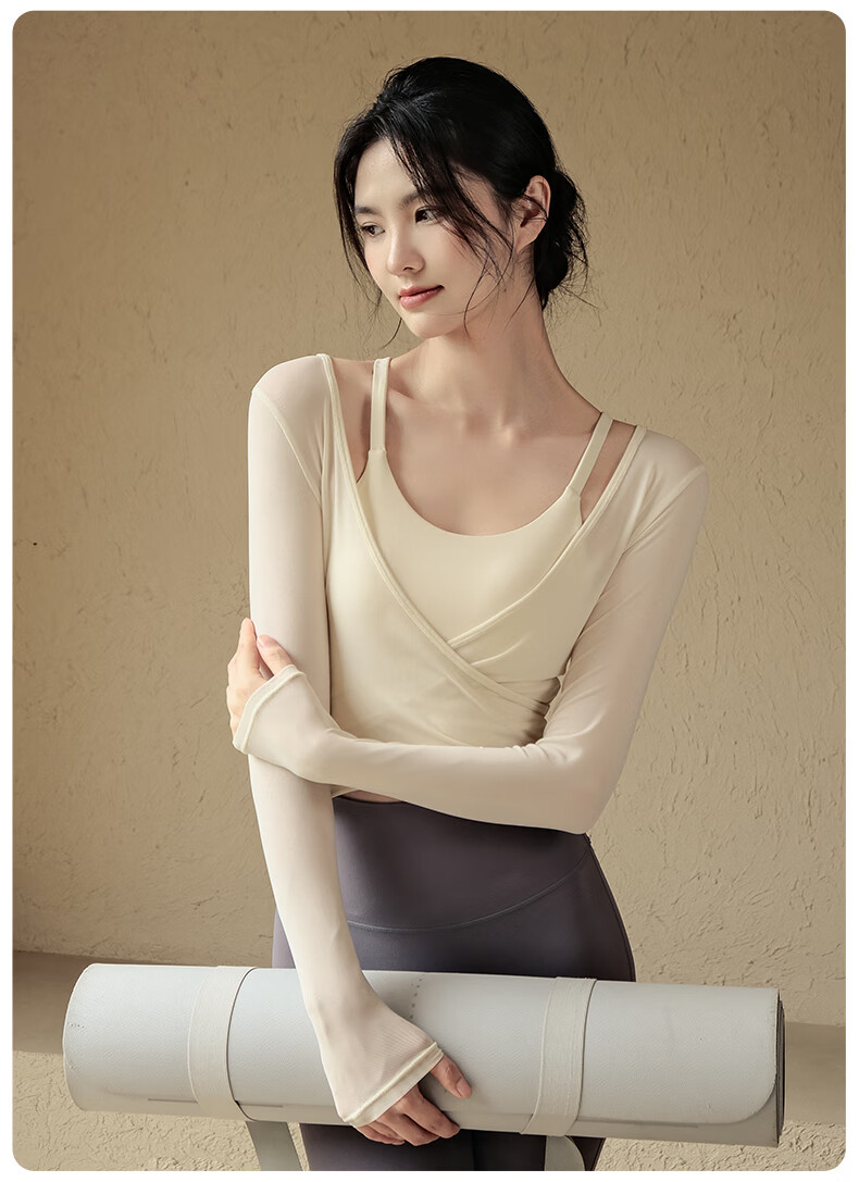 Yoga Girl Yoga Suit Women's Padded Long Sleeve Blouse Pilates Training Fitness Sports Suit Milky White Top + Milky White Bra + Gray Pants S (80-95Jin Jin equals 0.5kg)