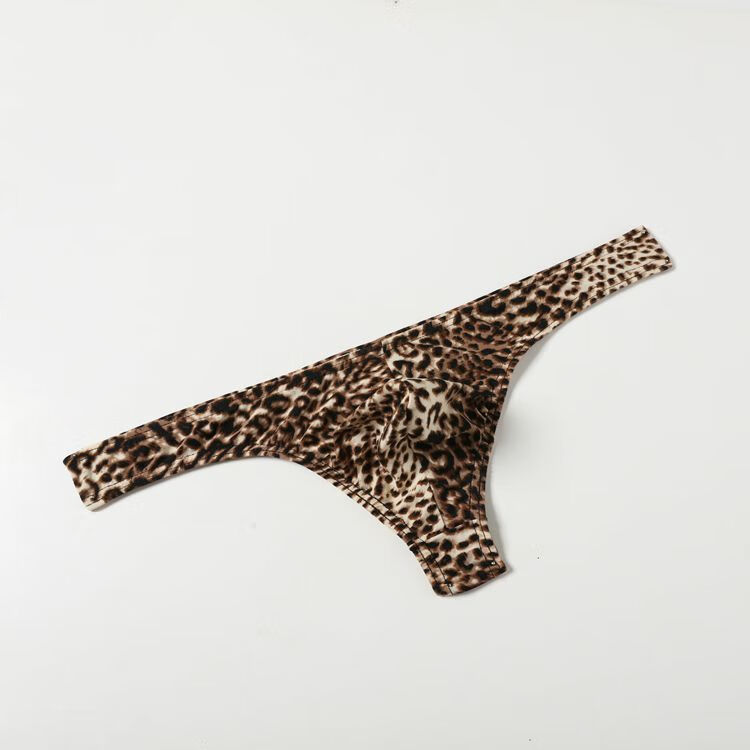 Men's leopard print underwear, men's thong with bulging bag, narrow hem, sexy men's thong, L black