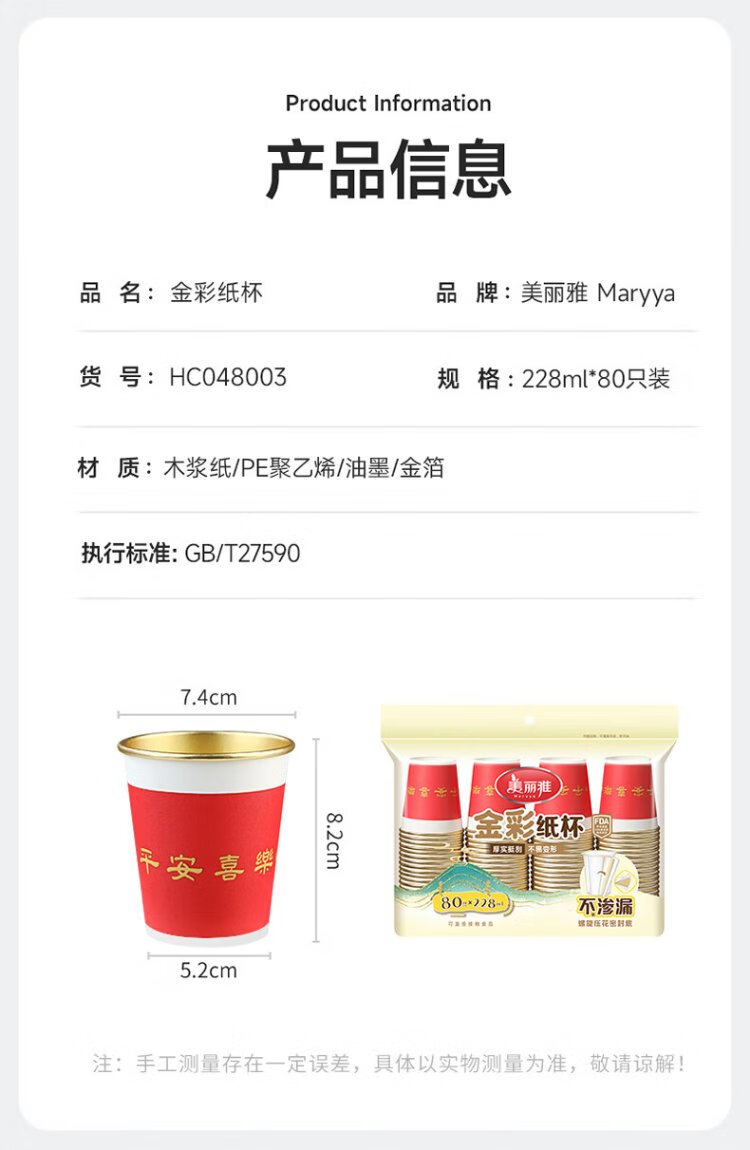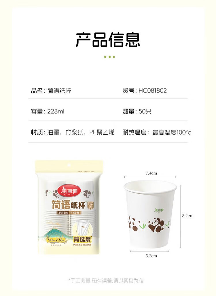 MARYYA disposable cup, household, commercial, office tea cup, trial cup, thick water cup, simple language printed cup, 228ml*50 pieces