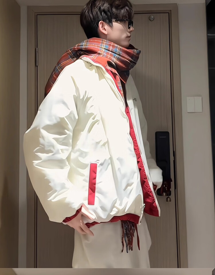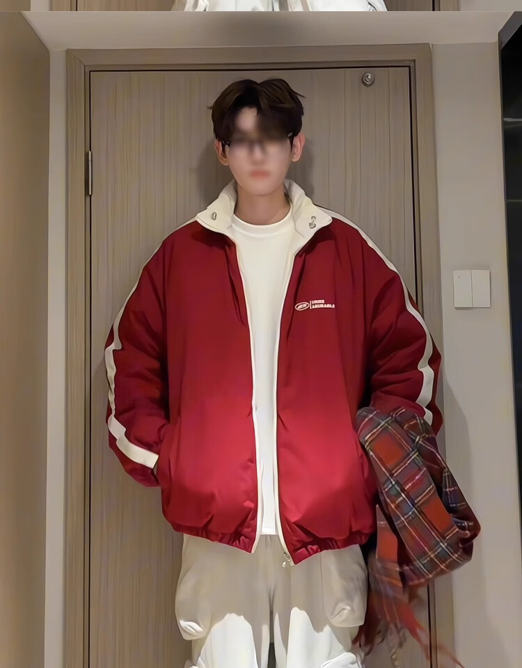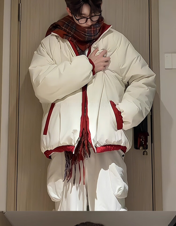 Katuchi American double-sided down cotton jacket men's winter thickened warm cotton coat handsome contrasting color short bread coat bull red + off-white double-sided cotton jacket version XL