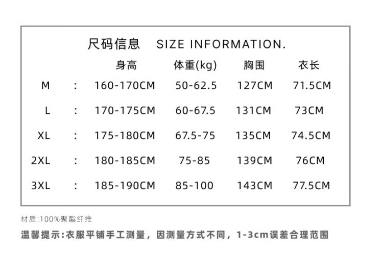 China (cm) 165 / 88-90 170 / 96-98 175 / 108-110 180 / 118-122 185 / 126-130