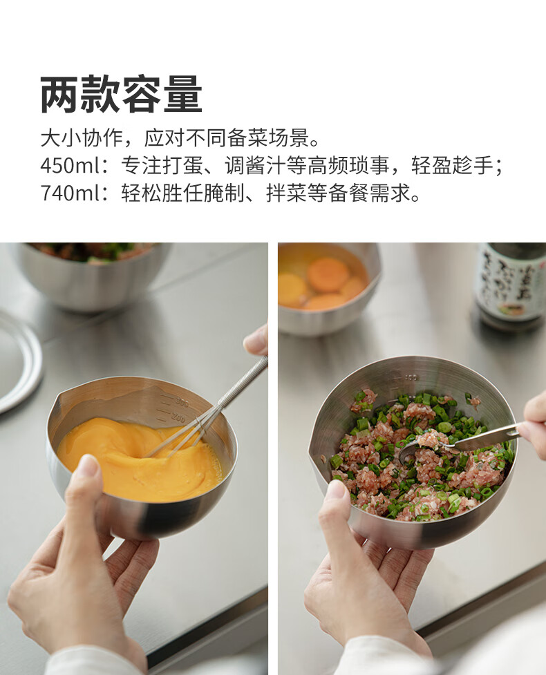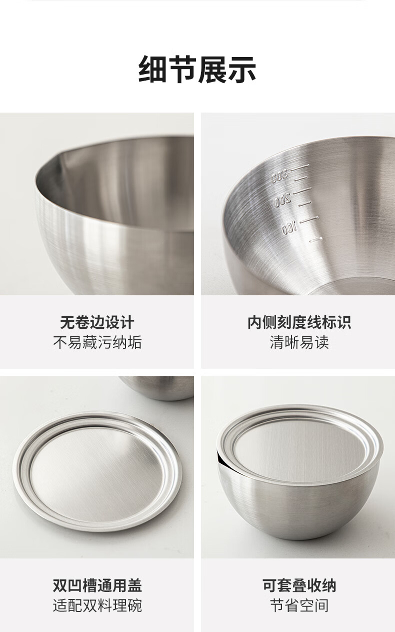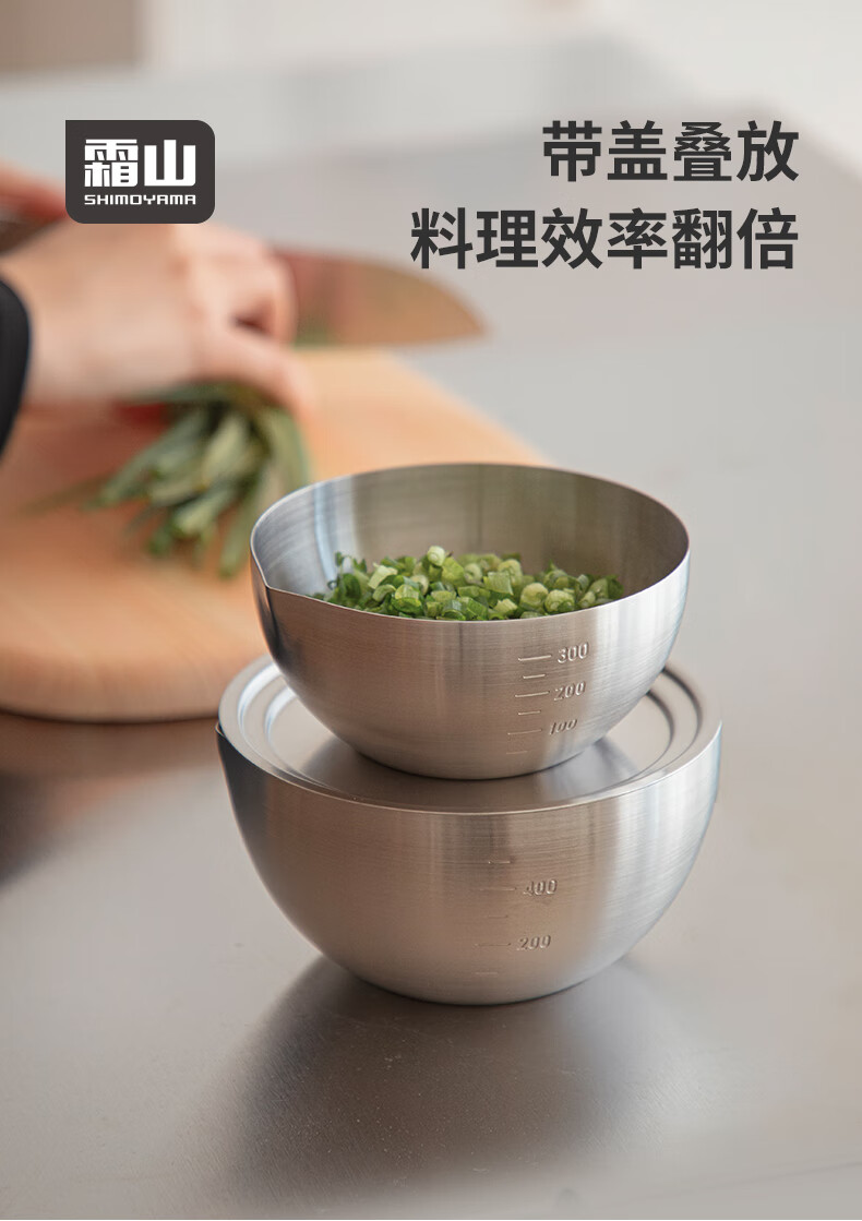 Shuangshan Stainless Steel Cooking Bowl with Scale Baking and Egg Bowl Mixing Salad Basin Kitchen Multi-Function Preparation Bowl Set Cooking Bowl S+L+Lid