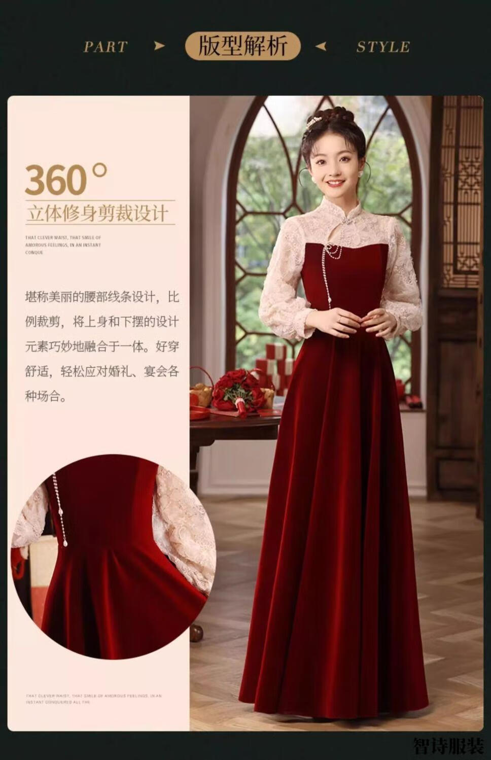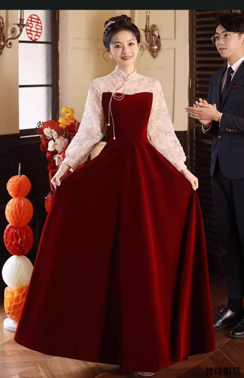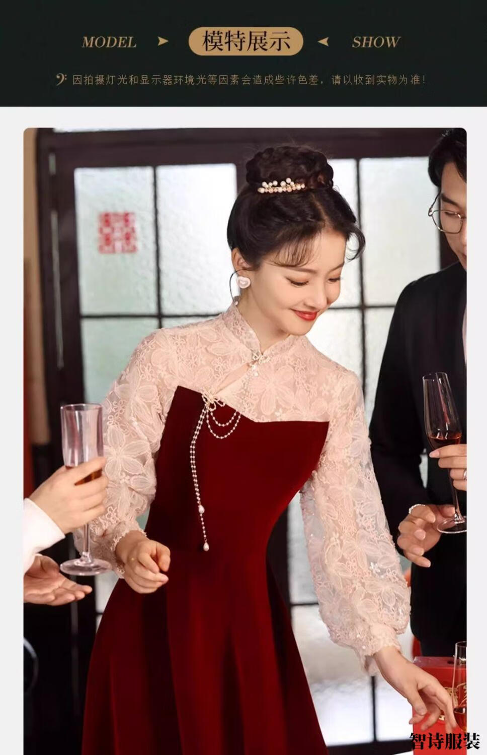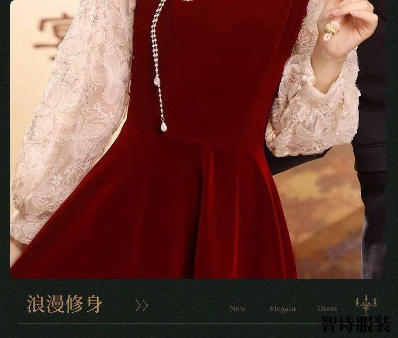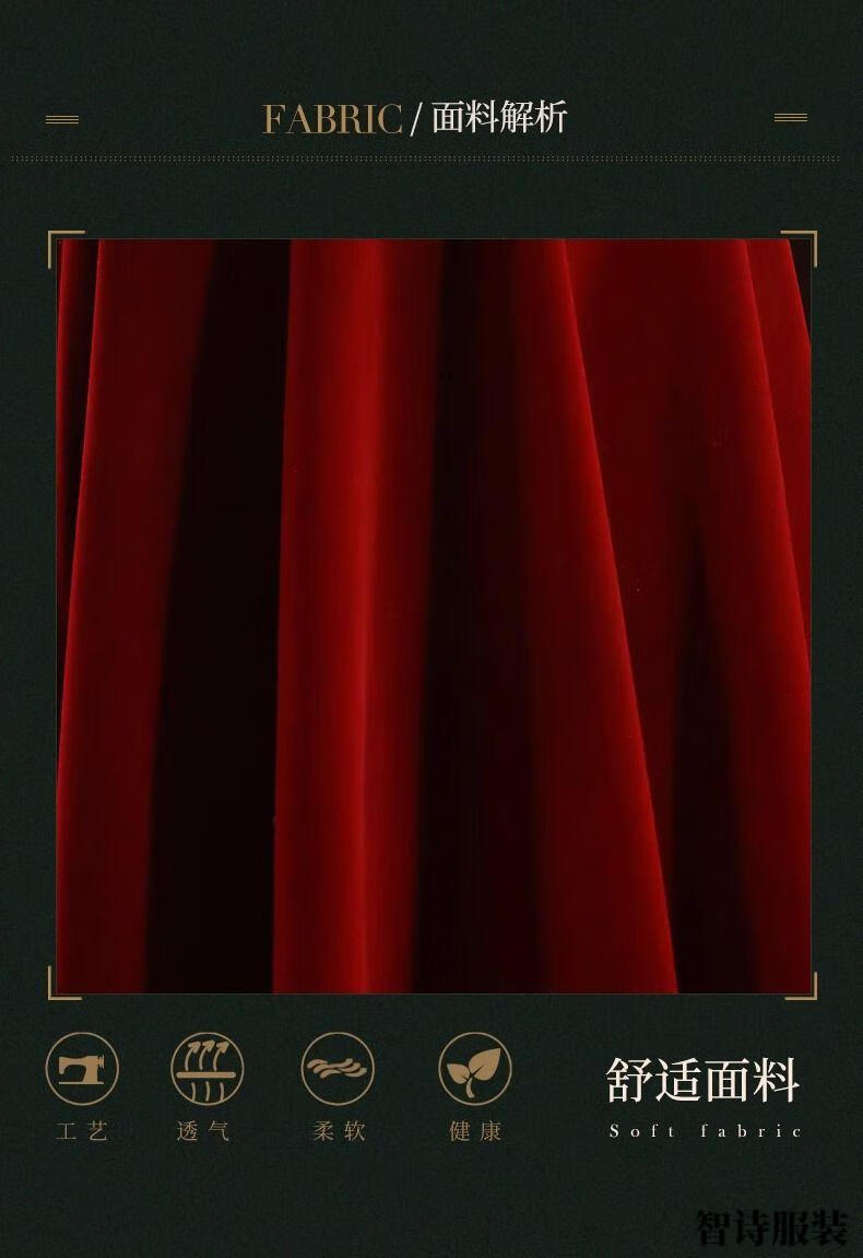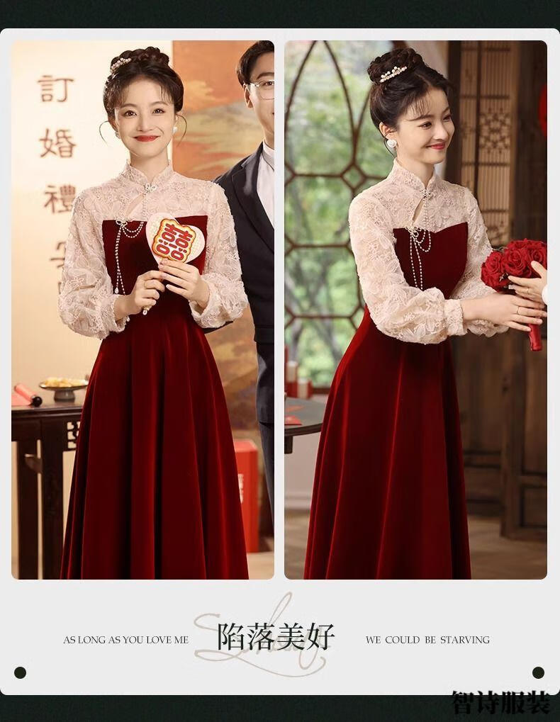 Meianjia Toast Wear Bridal New New Chinese Style Slim Fit Velvet Engagement Wedding Dress Dress Burgundy 2XL