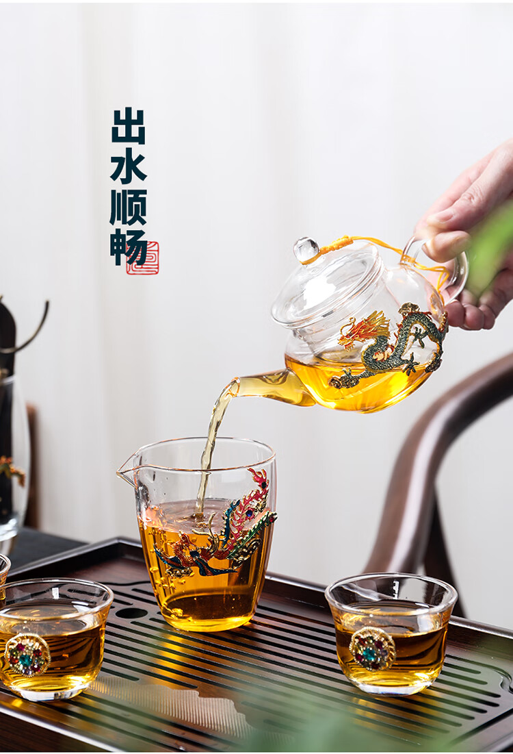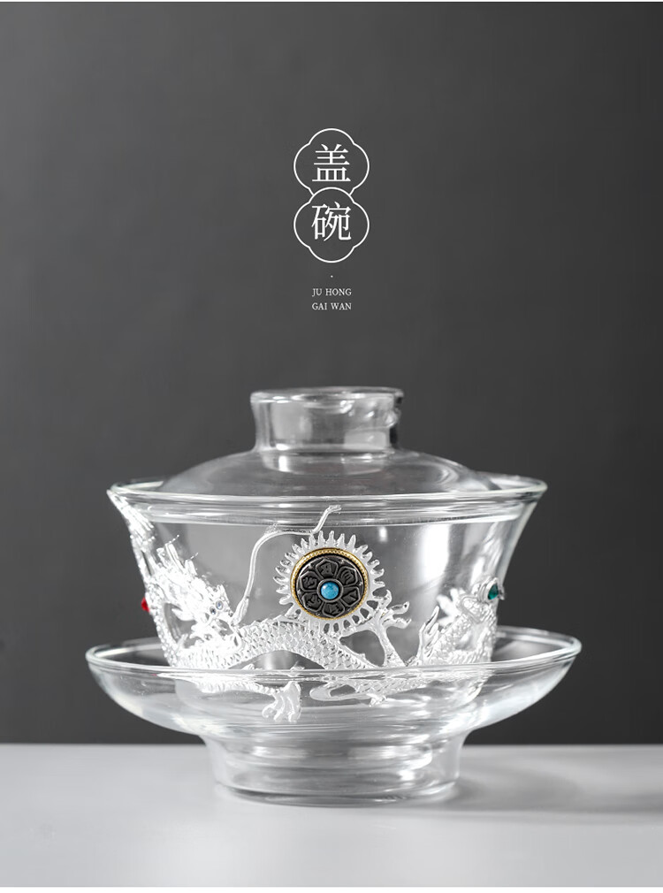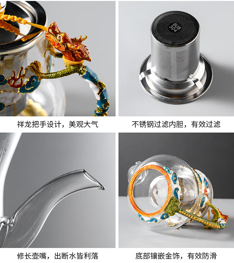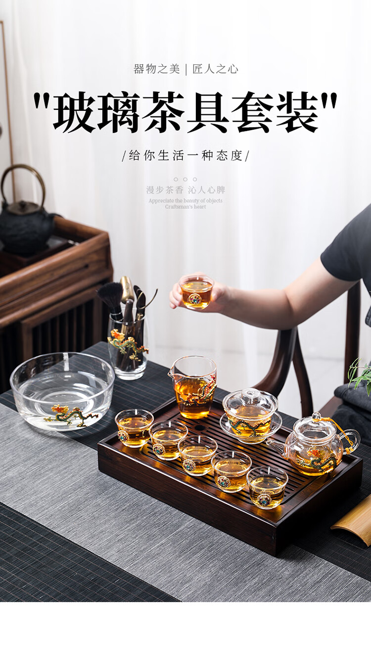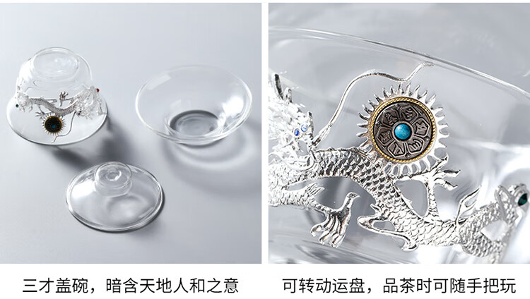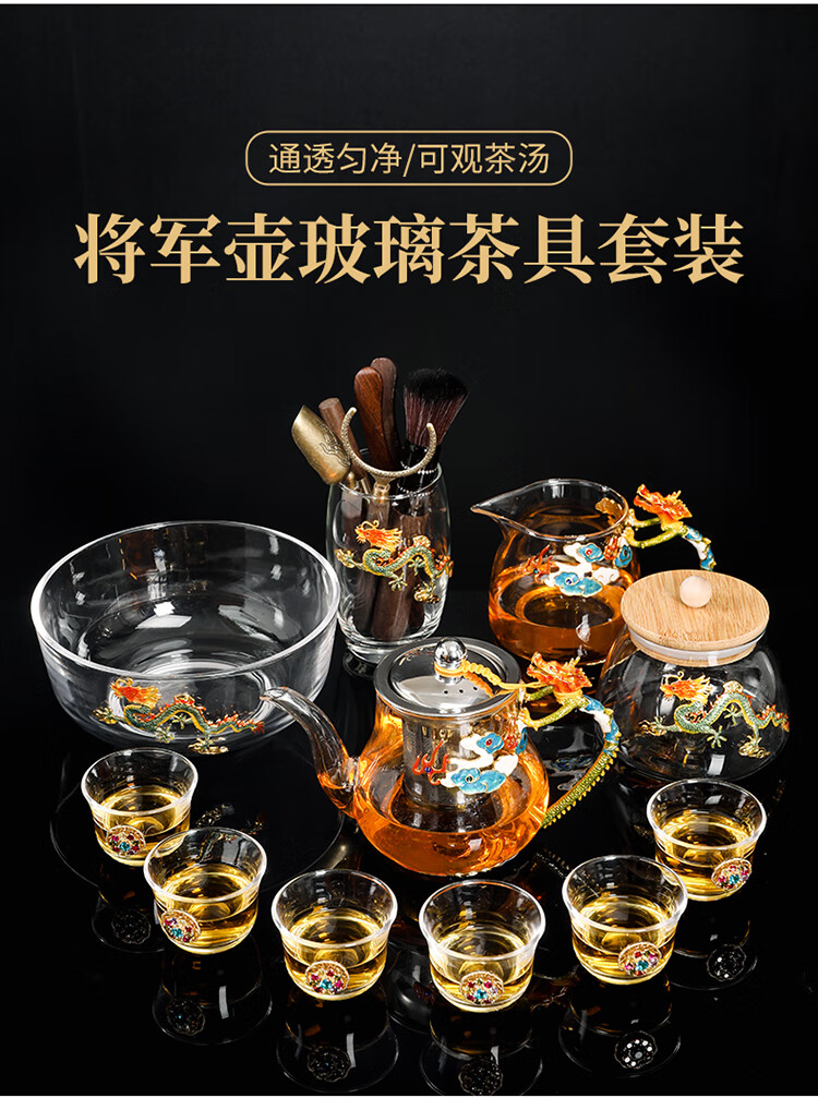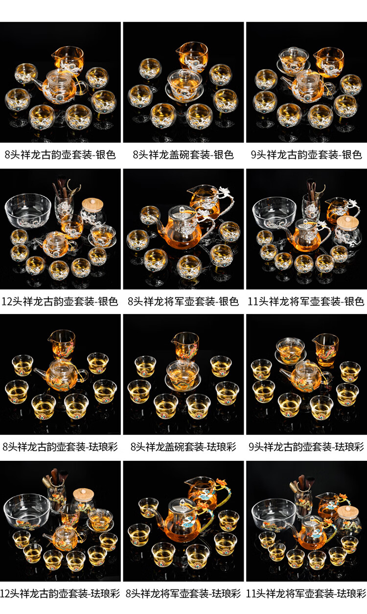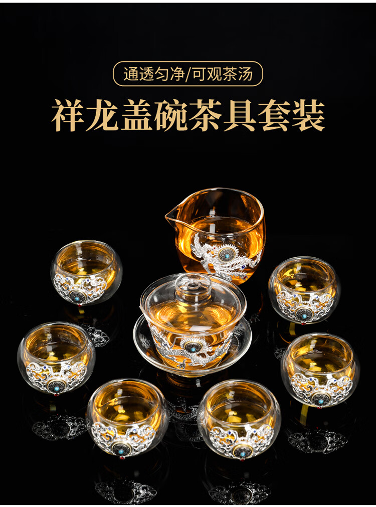 Ai Yingjia Light Luxury Glazed Tea Set High-end Gold-Inlaid Jade Porcelain Kung Fu Tea Ceremony Complete Set Glass Tea Bowl Tea Cup Set 8-head Xianglong Ancient Rhyme Pot Set-Silver