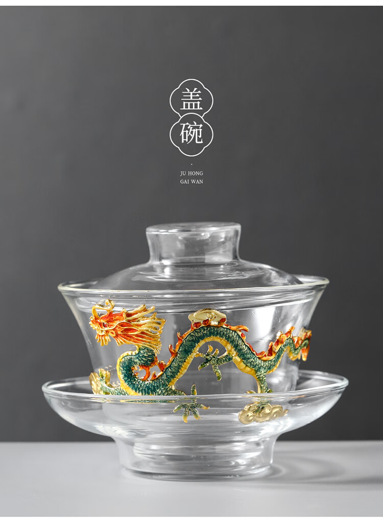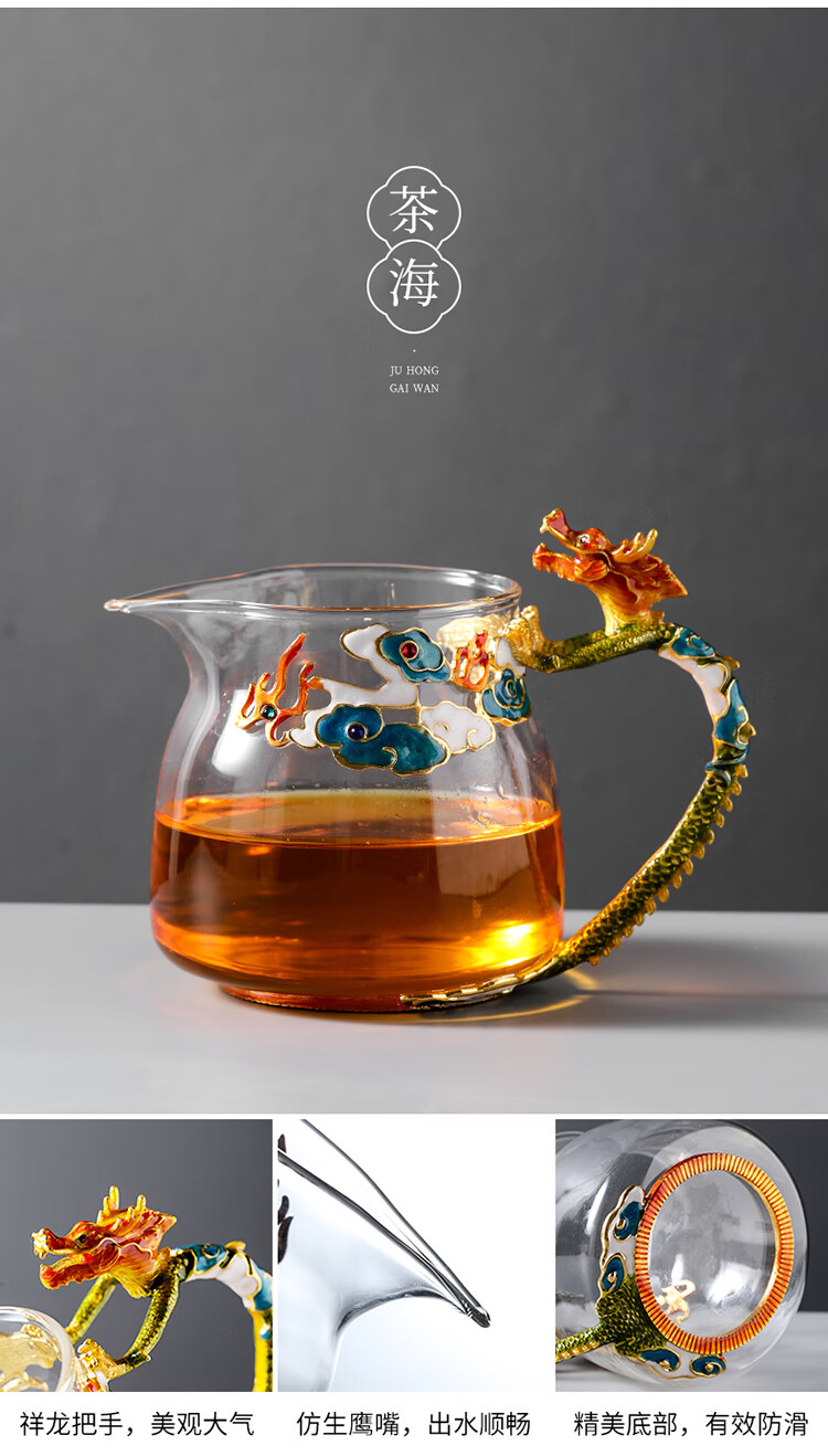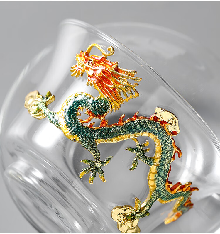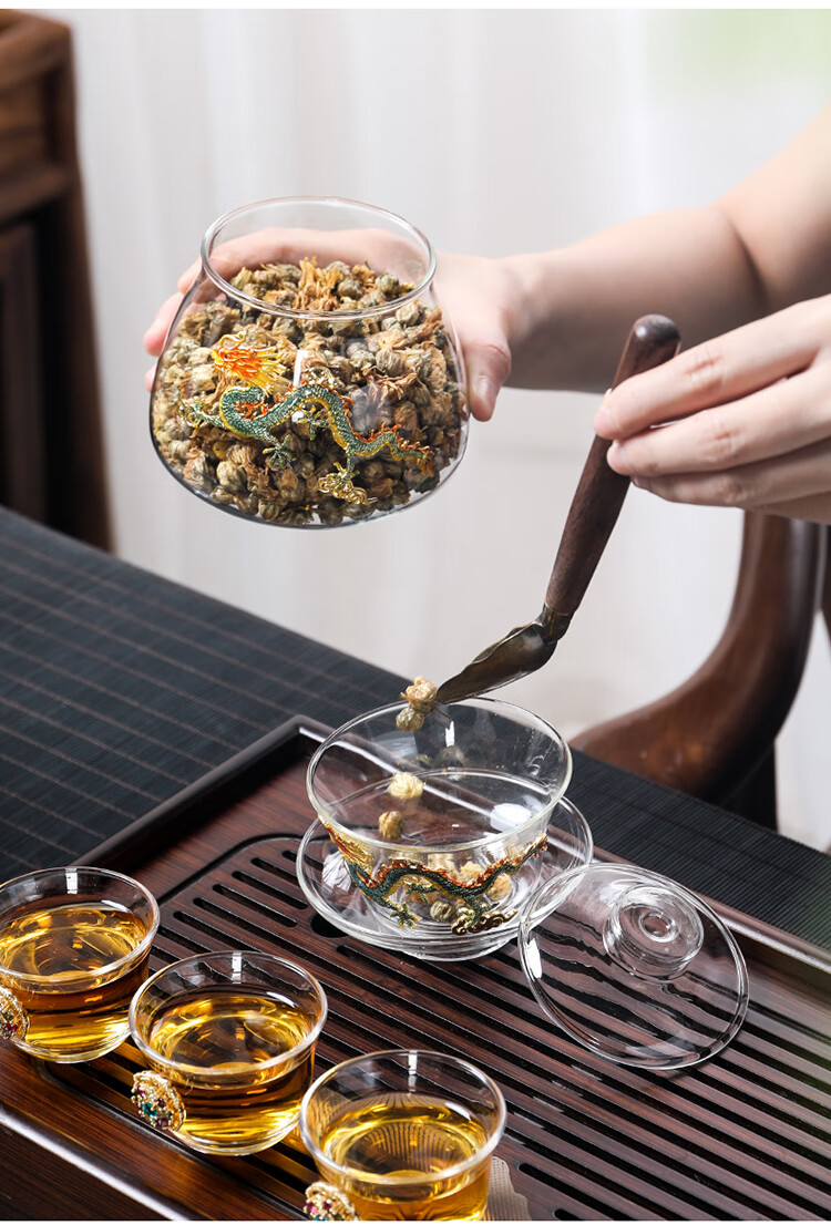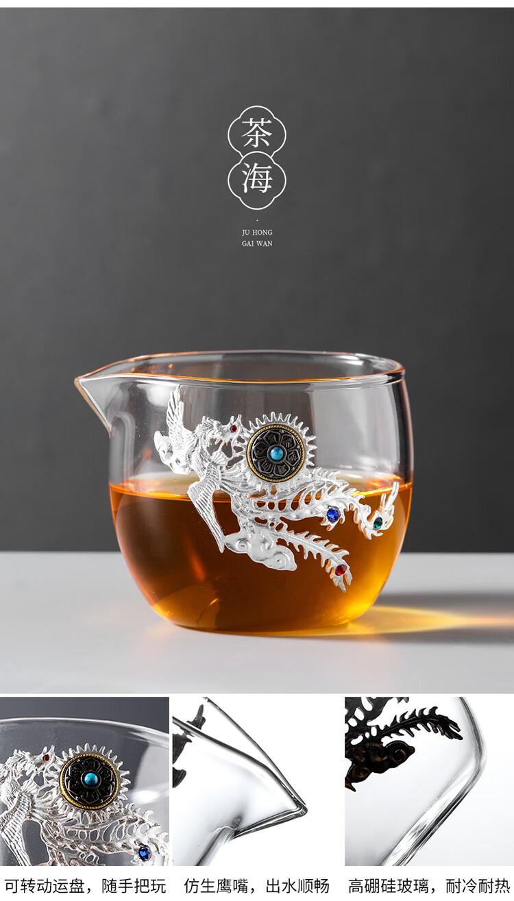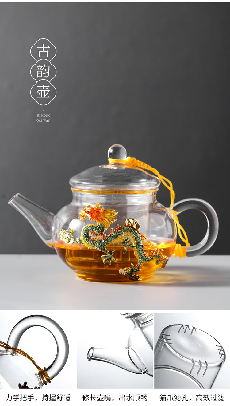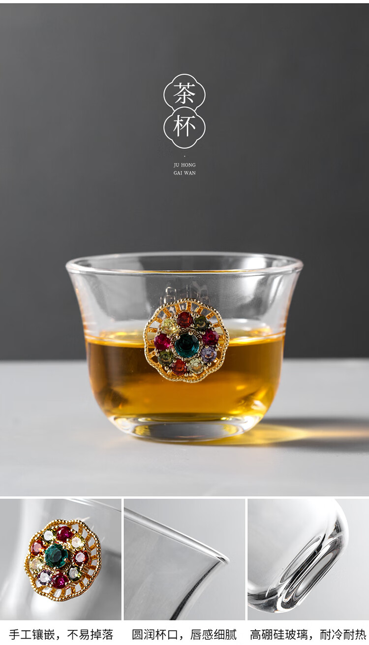 Ai Yingjia Light Luxury Glazed Tea Set High-end Gold-Inlaid Jade Porcelain Kung Fu Tea Ceremony Complete Set Glass Tea Bowl Tea Cup Set 8-head Xianglong Ancient Rhyme Pot Set-Silver