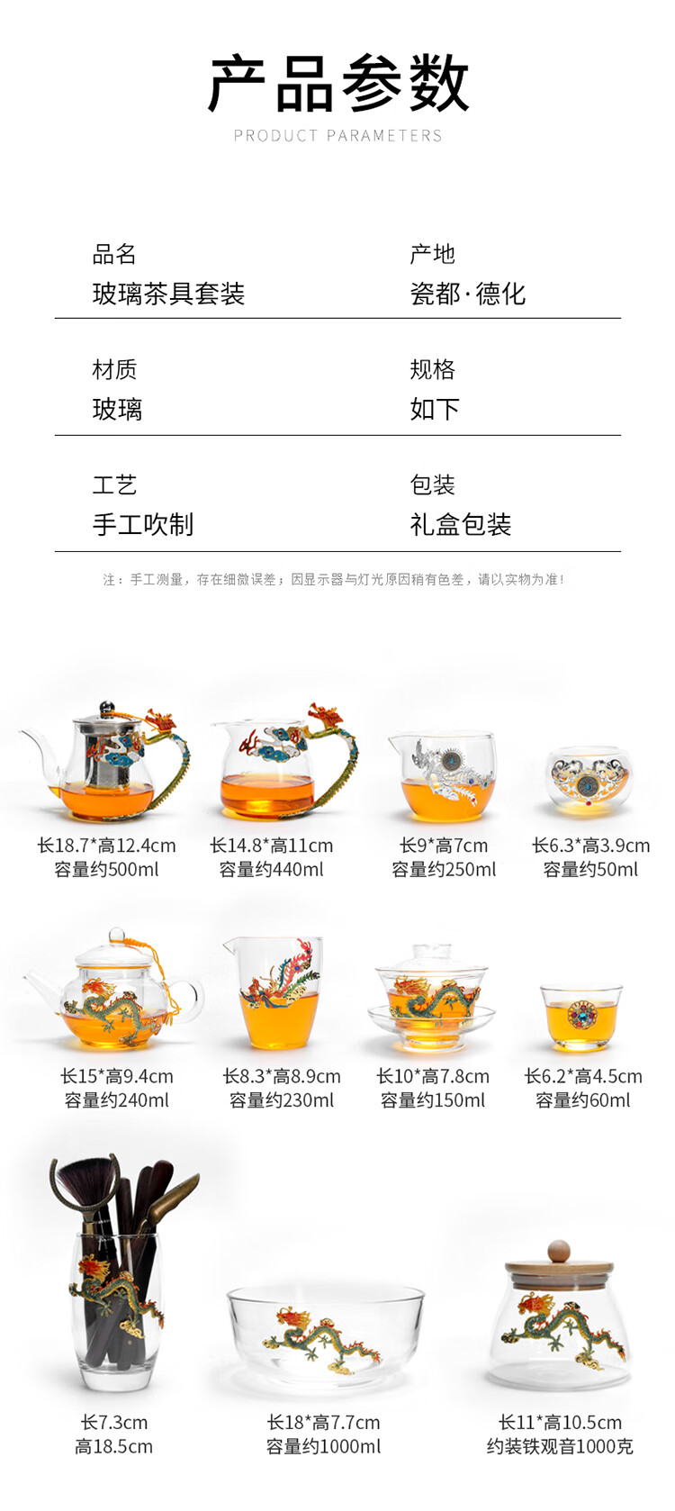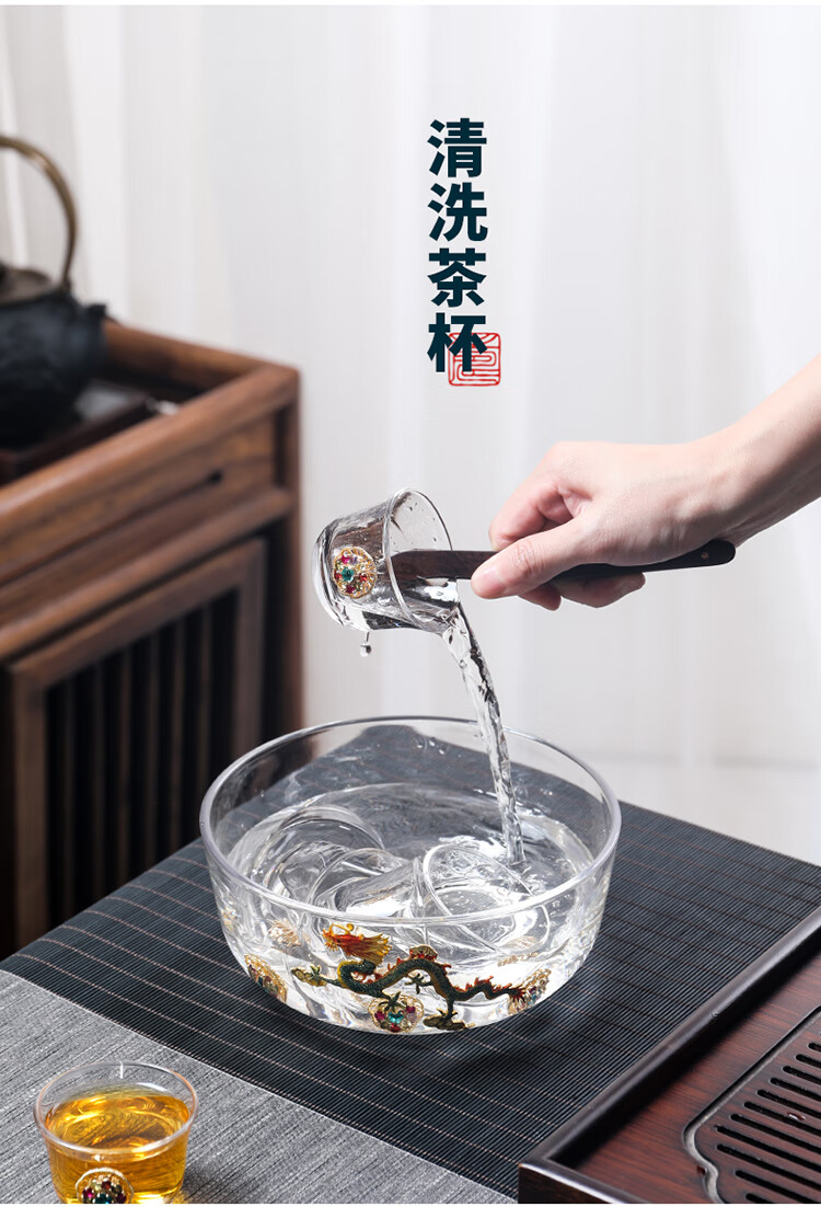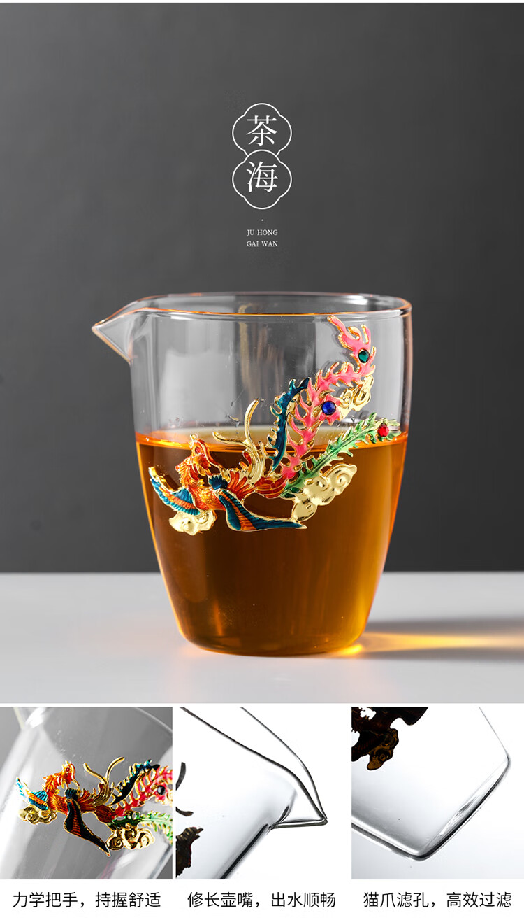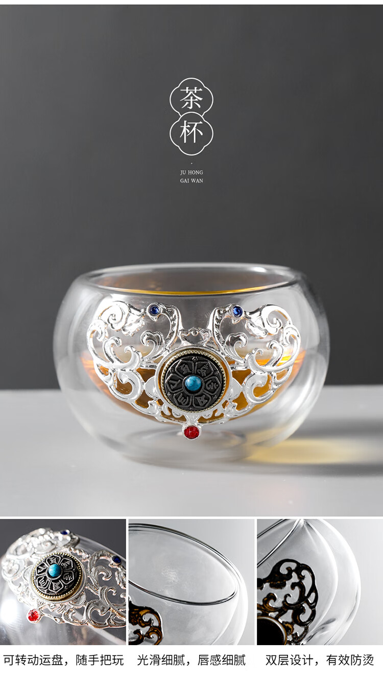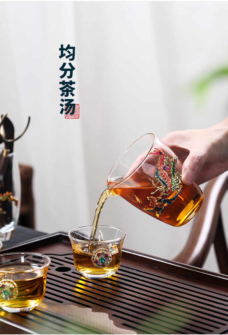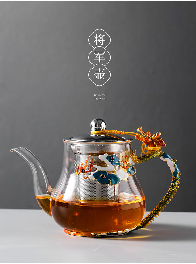 Ai Yingjia Light Luxury Glazed Tea Set High-end Gold-Inlaid Jade Porcelain Kung Fu Tea Ceremony Complete Set Glass Tea Bowl Tea Cup Set 8-head Xianglong Ancient Rhyme Pot Set-Silver