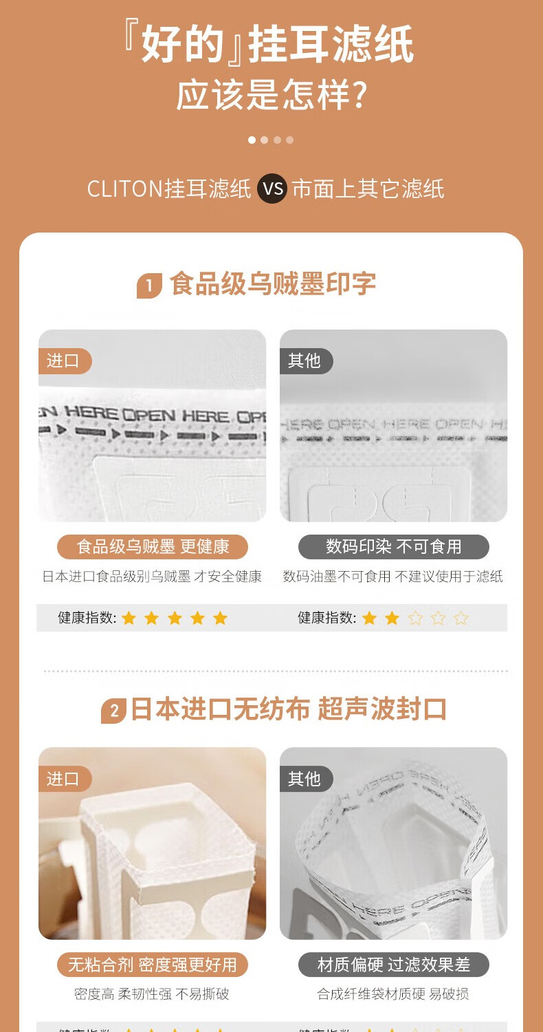 Hanging ear coffee filter paper portable hand brewed coffee powder filter drip type hand brewed coffee powder filter bag 100 pieces hanging ear filter paper white