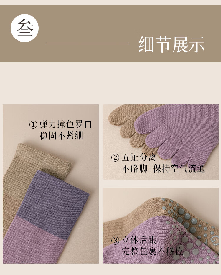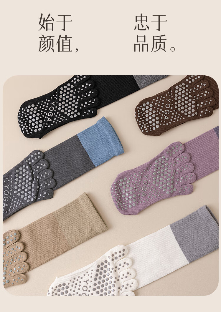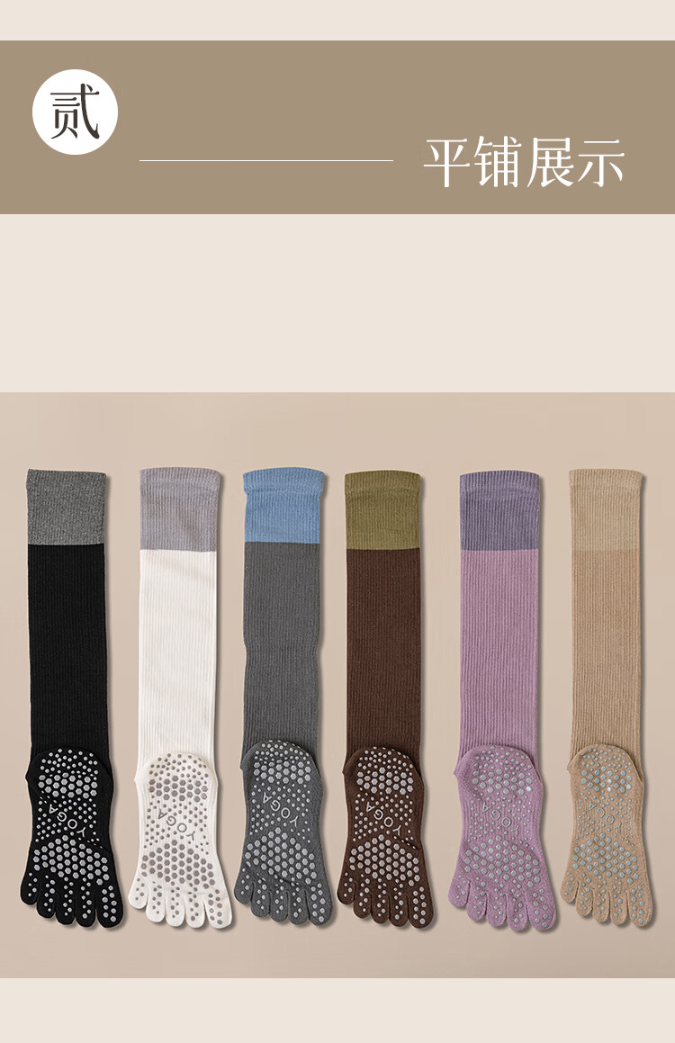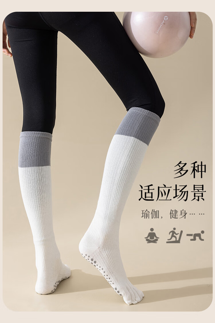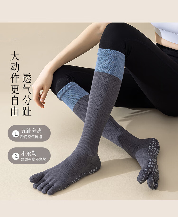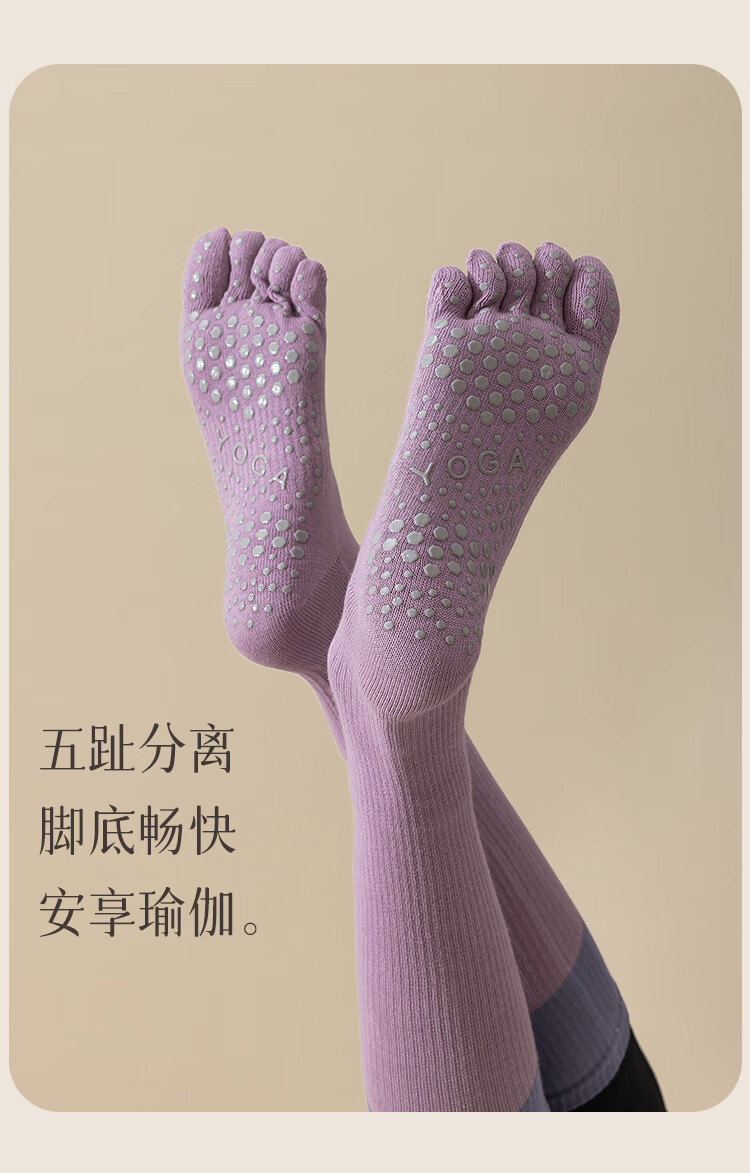 Five Finger Yoga Socks Women's Non-Slip Sports Pressure Stockings Pilates Fitness Split Toe Contrast Color Calf Socks Purple Tube Height 34cm 1 Pair One Size (35-40) Split Toe Pressure Non-Slip