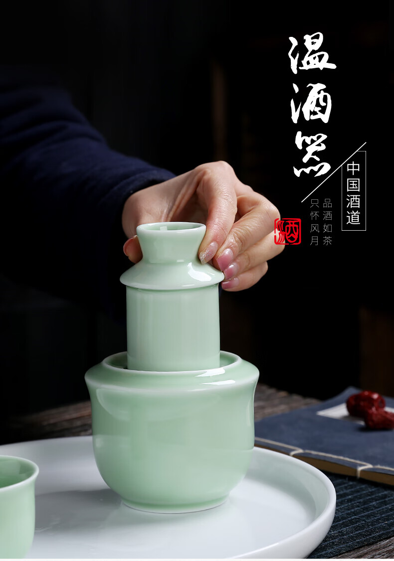 MPPMCK wine warmer, scalding wine pot, home warming wine kettle, hot wine pot, 2 liang, ceramic wine set, scalding wine, yellow wine, white wine, wine glass, celadon wine warmer, 2 liang, with 1 cup
